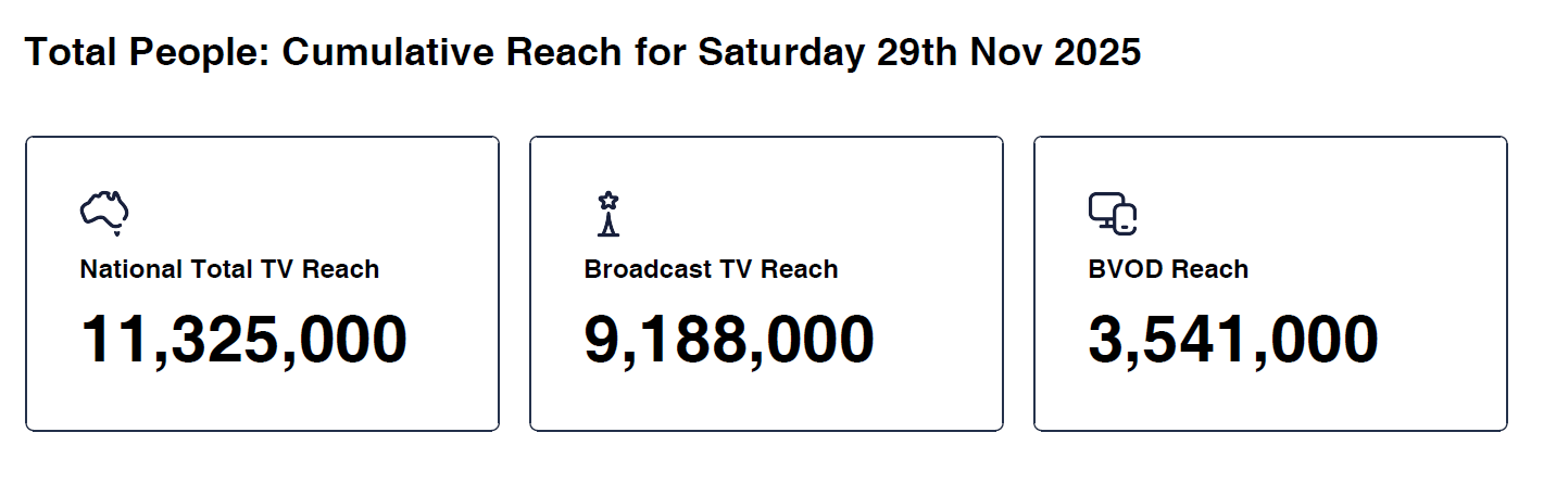 Data © OzTAM Pty Limited 2025. The Data may not be reproduced, published or communicated (electronically or in hard copy) in whole or in part, without the prior written consent of OzTAM.