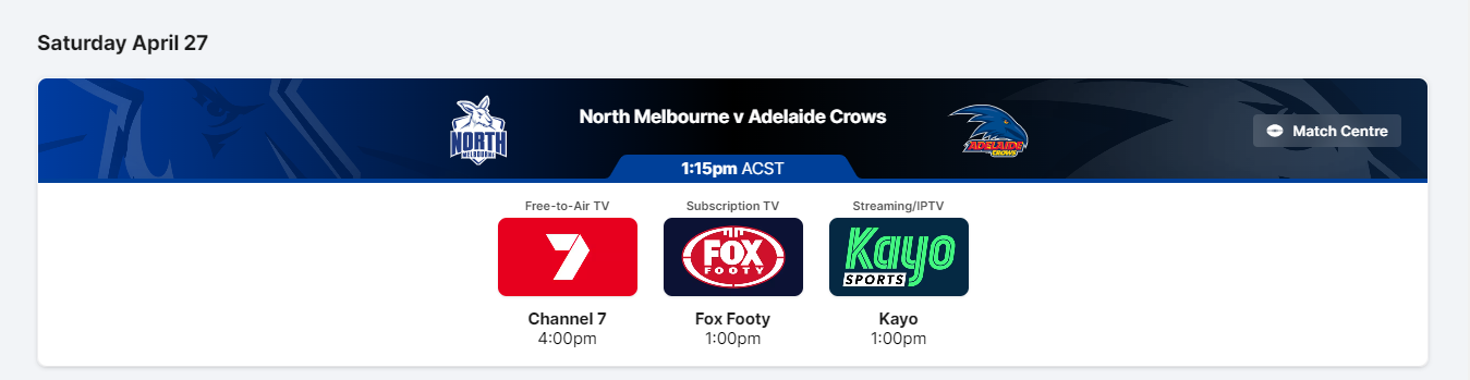 They get all of the Saturday games back to back to back from 10:30am to like 7-8pm with the last game on 7mate.