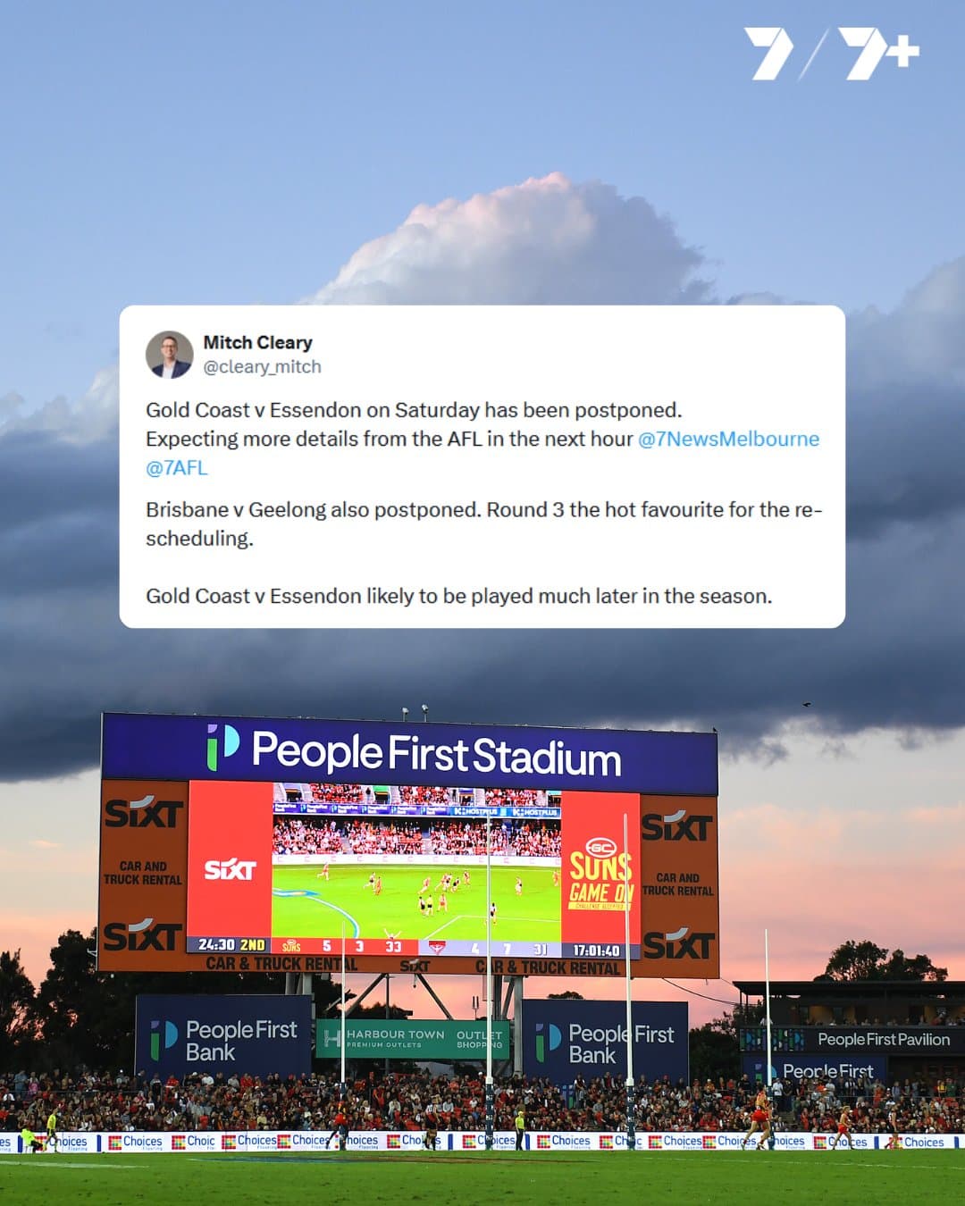 I remember in the (redrawn) 2020 AFL season, Seven was due to cover a match between Essendon and Melbourne in round three, only for it to be postponed due to a positive COVID-19 case within the Essendon team.