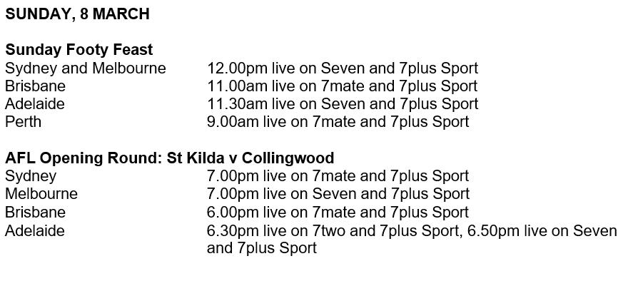 “There is nothing like the return of footy – the noise, the passion and the roar of the crowd – and we are proud to bring the biggest moments to fans across the country, live and free on Seven and 7plus Sport,” he said.