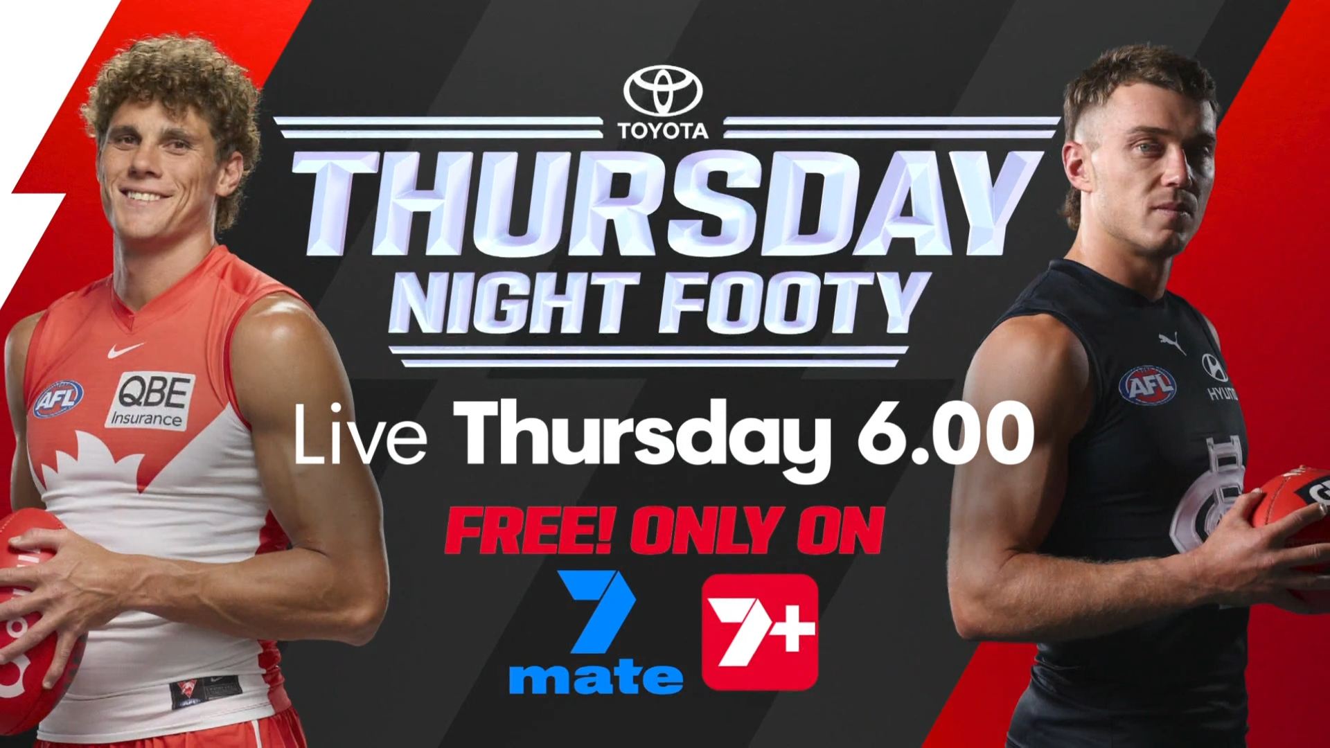 Thursday Night Footy – 7.00pm AEDT live on Seven and 7plus Sport Hosts: Rebecca Maddern and Hamish McLachlan