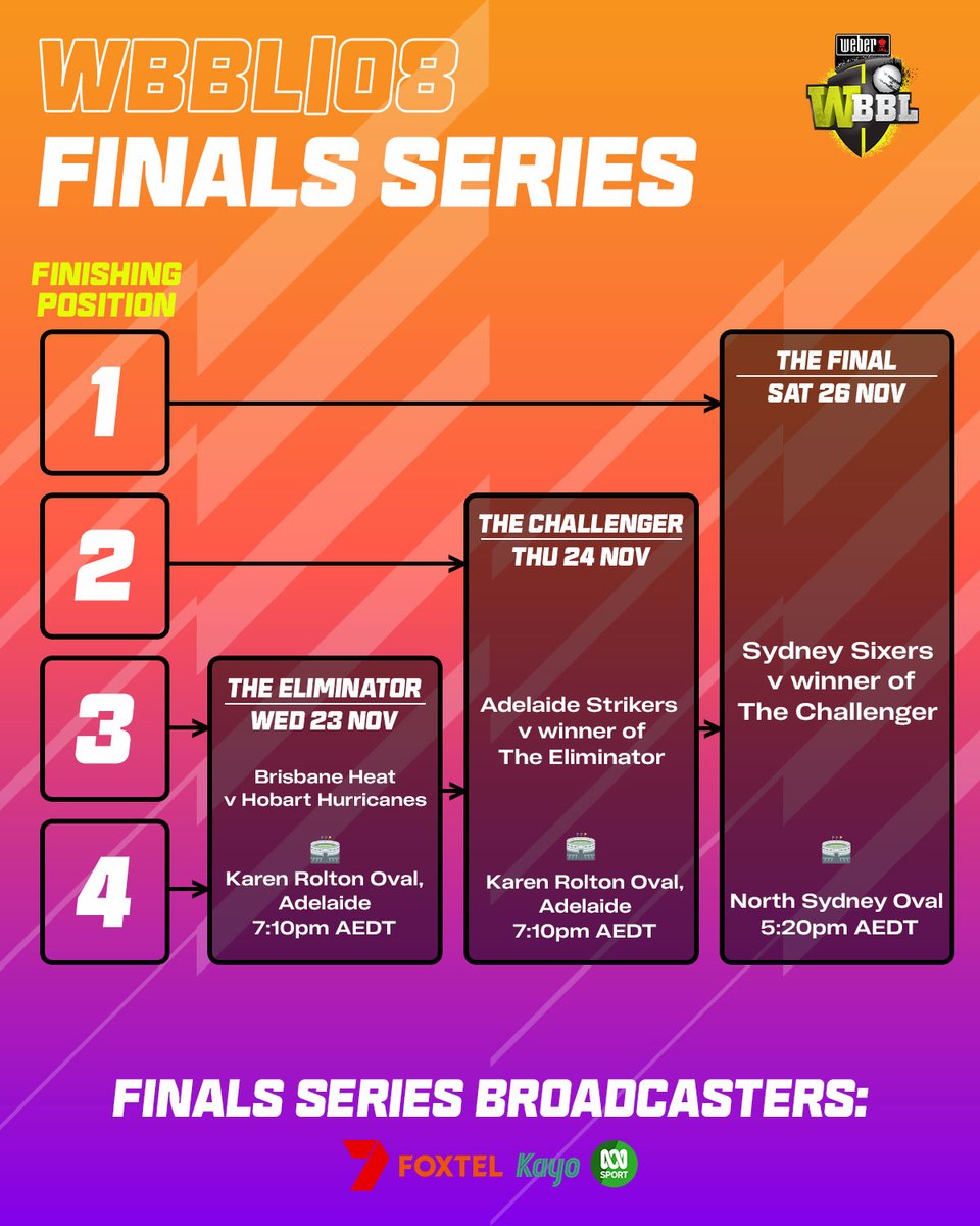 Here is the fixture for this week’s WBBL finals.