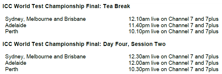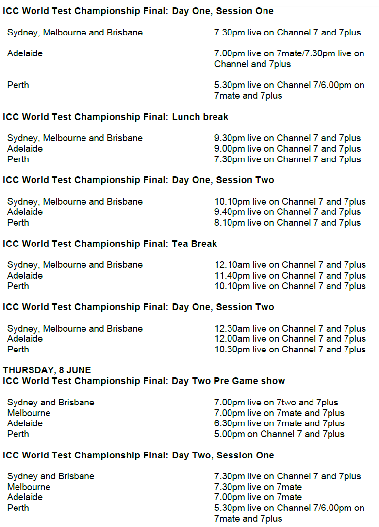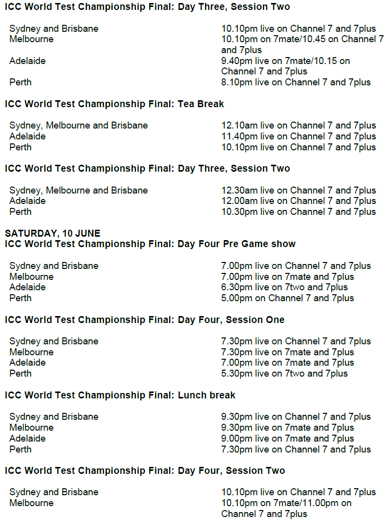 The gripping final will be shown here in prime time from 7 June to 11 June, with a reserve day in place (12 June). The coverage will also include a 30-minute pre-game show each night, from 7.00pm AEST on 7mate and 7plus, where viewers will be greeted by many of 7Cricket’s favourite faces.