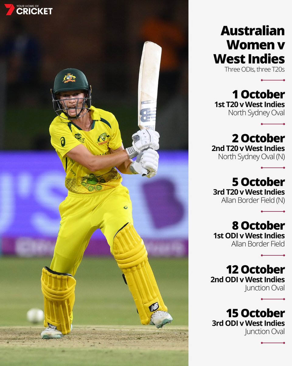 Seven’s coverage starts on Sunday October 1 when Australia host West Indies in the first women’s Twenty20, against the lead up matches of NRL grand final.