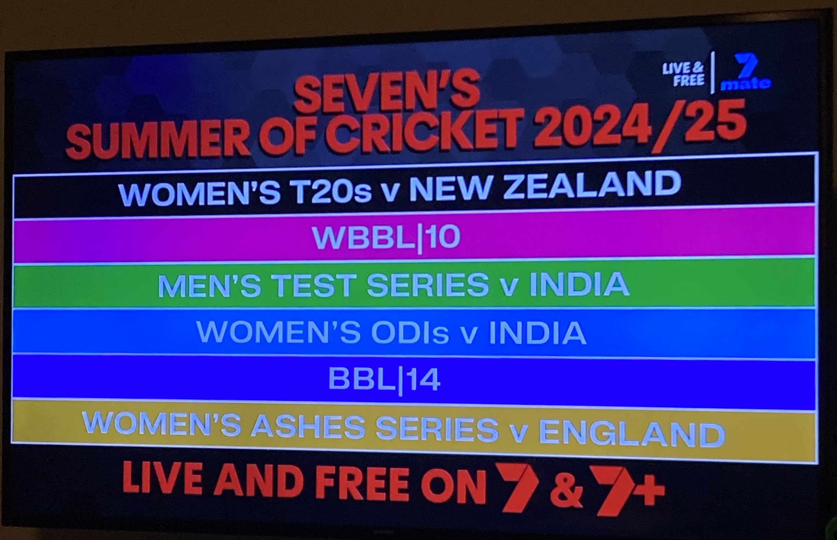 “Complemented by what promises to be a fantastic BBL and WBBL season with many of the big-name players available for the competition, there is nowhere else to be this summer than right here on Seven and 7plus, Your Home of Cricket.”