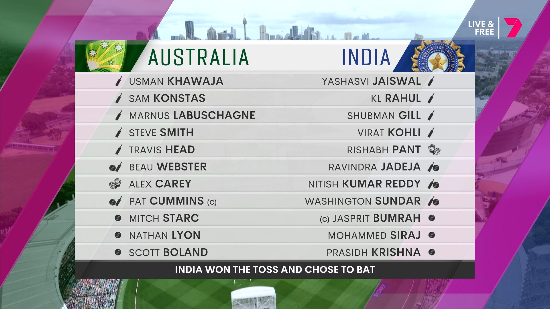 The Border-Gavaskar Trophy Test Series marks the first time men’s international cricket has been available to stream for free in Australia. Also for the first time, Seven’s coverage on 7plus Sport includes a secondary Hindi commentary feed.