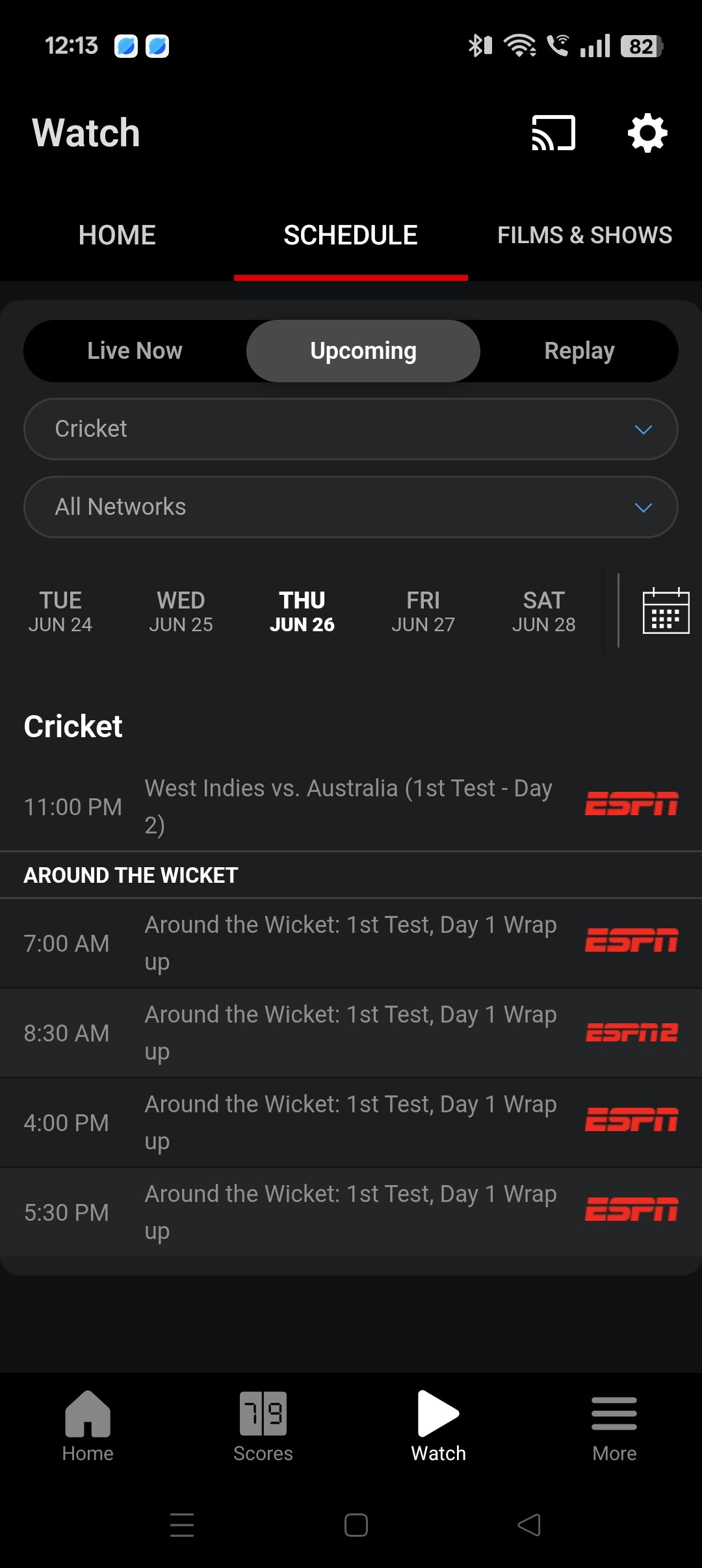 Edit: checking at 9:25pm Melb time, the mini for the 1st match is up on 7+