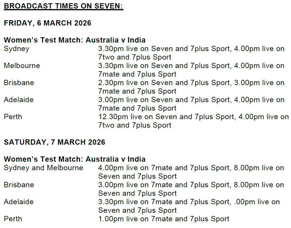 Following a monumental summer of cricket, the 2025-26 season is set to officially conclude in spectacular fashion as Australia takes on India in the women’s day-night test from the WACA from 3.30pm AEDT tomorrow, live and free on Seven, 7mate, 7two and 7plus Sport.
