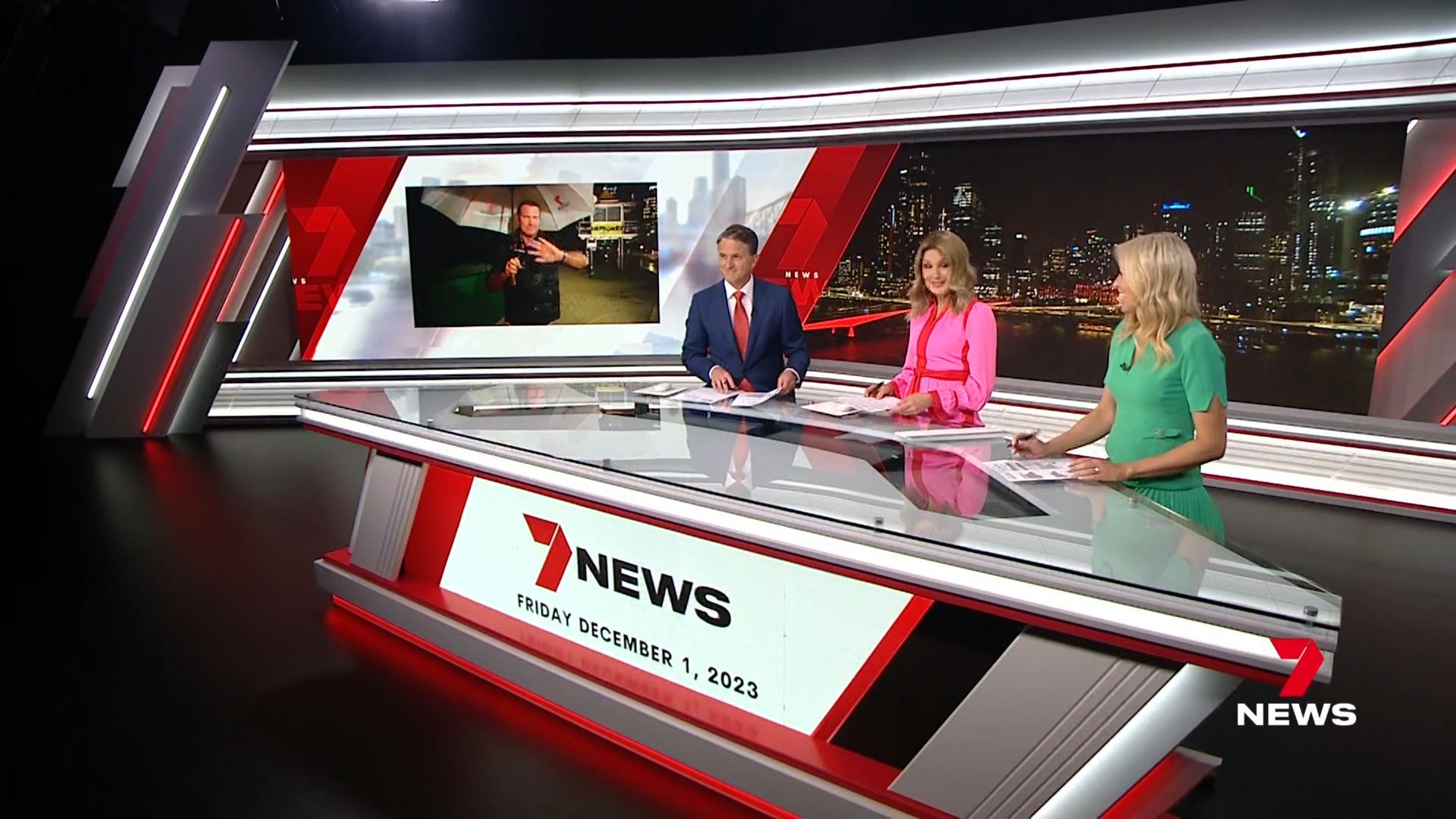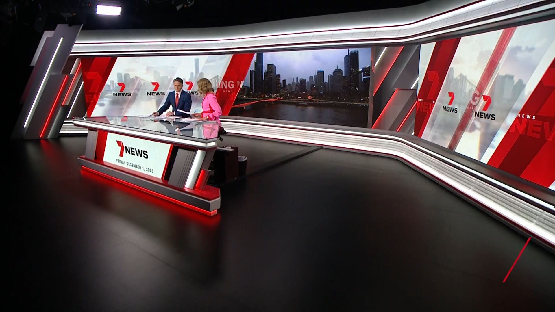 I think the only gripe I have with Seven’s new Brisbane set is just that the desk is too small, it should have been longer on each side which would have given it a better perspective, used the area better and hidden things like the cables running along the back, bin, storage etc when they use that side shot.