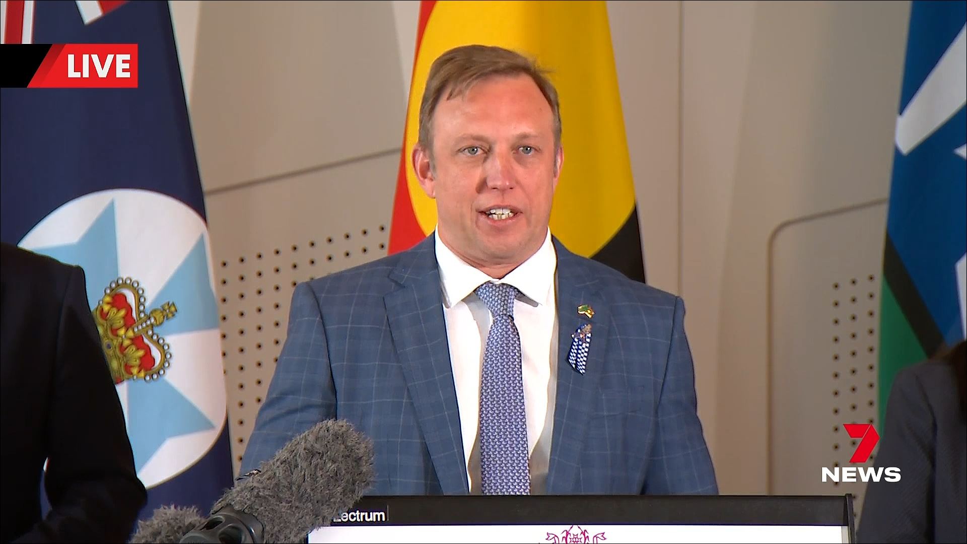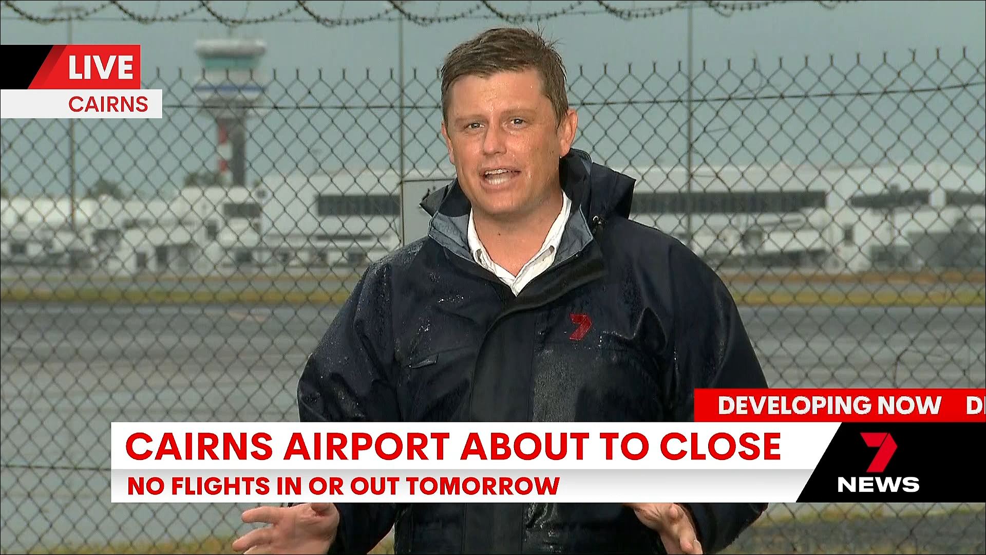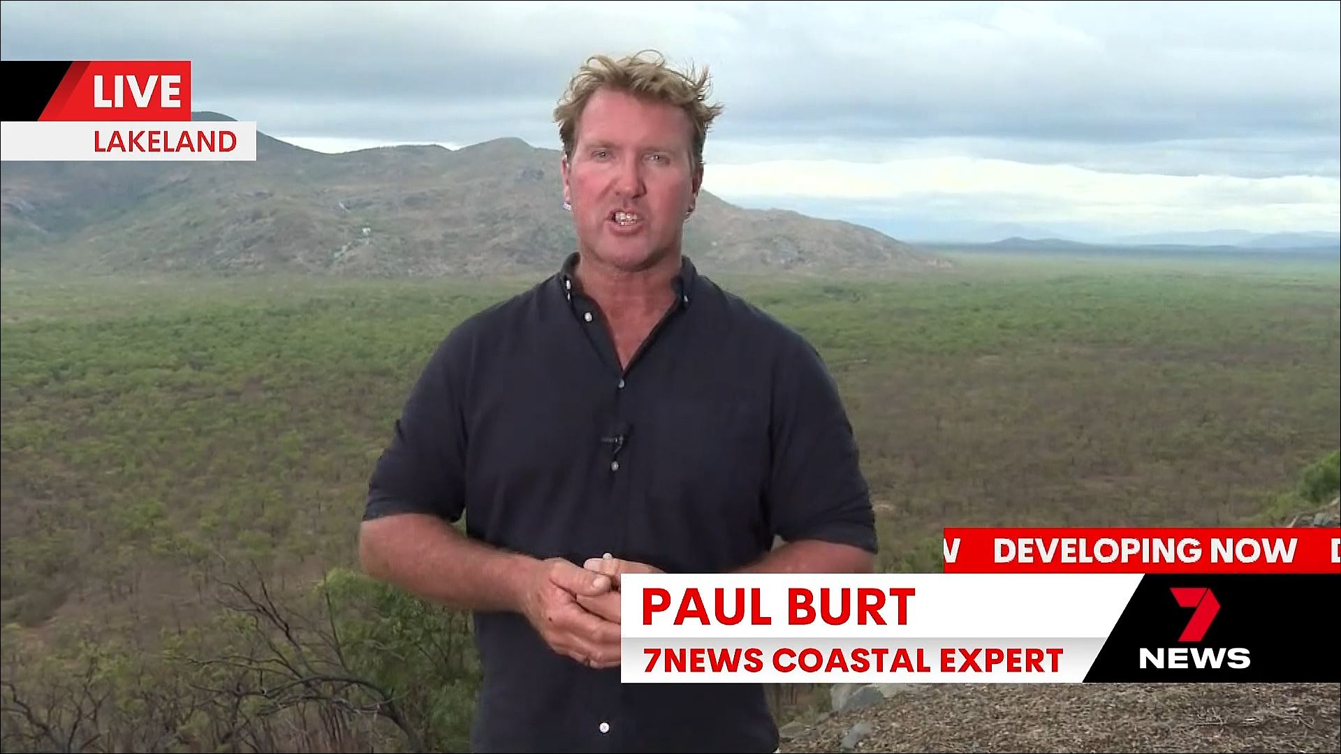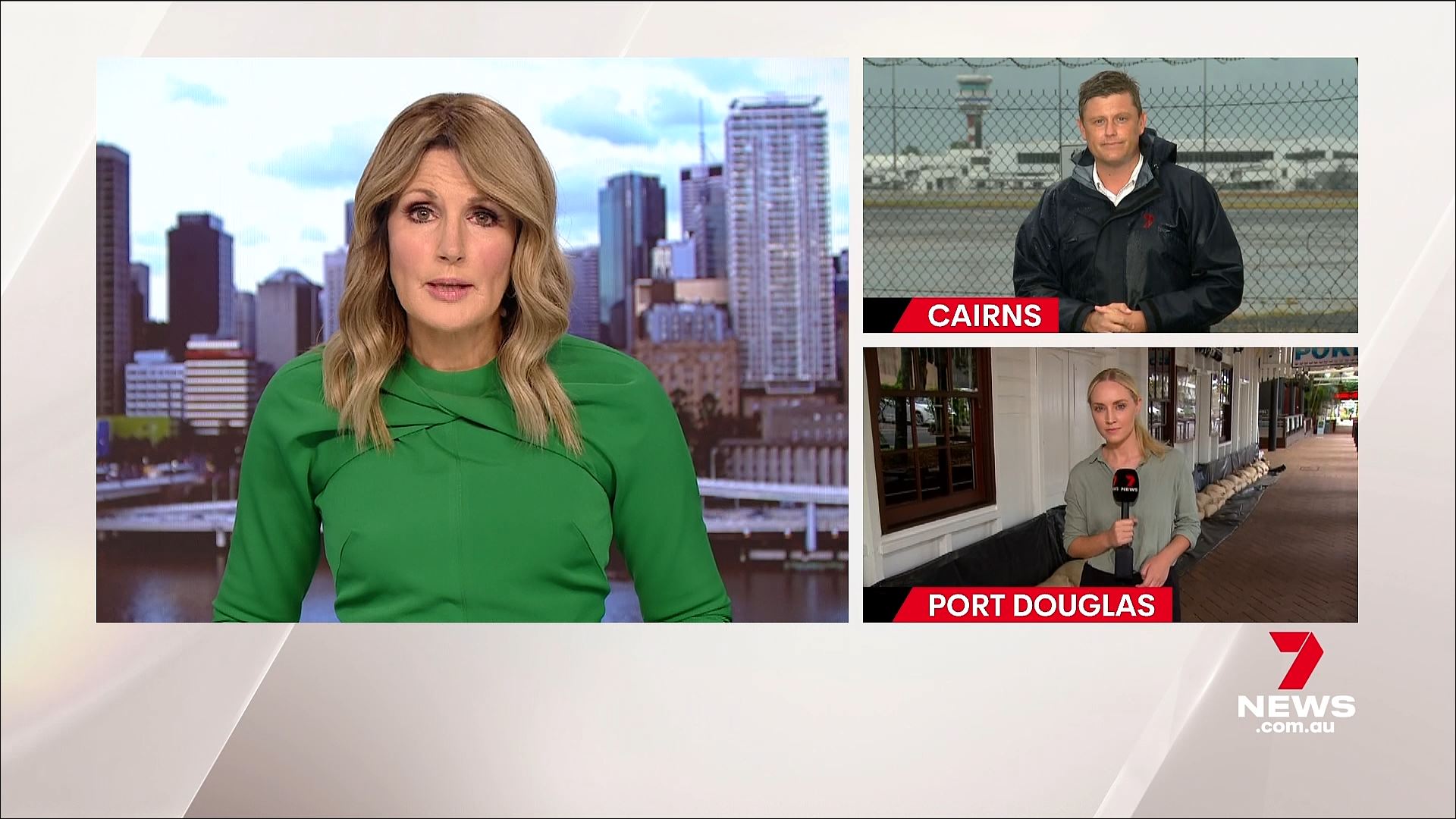 Seven Brisbane broke into programming (morning news) for a media conference on the cyclone (despite the caption). “Some of you will be interested in other matters”. It turned into formal announcements for leadership of the party.