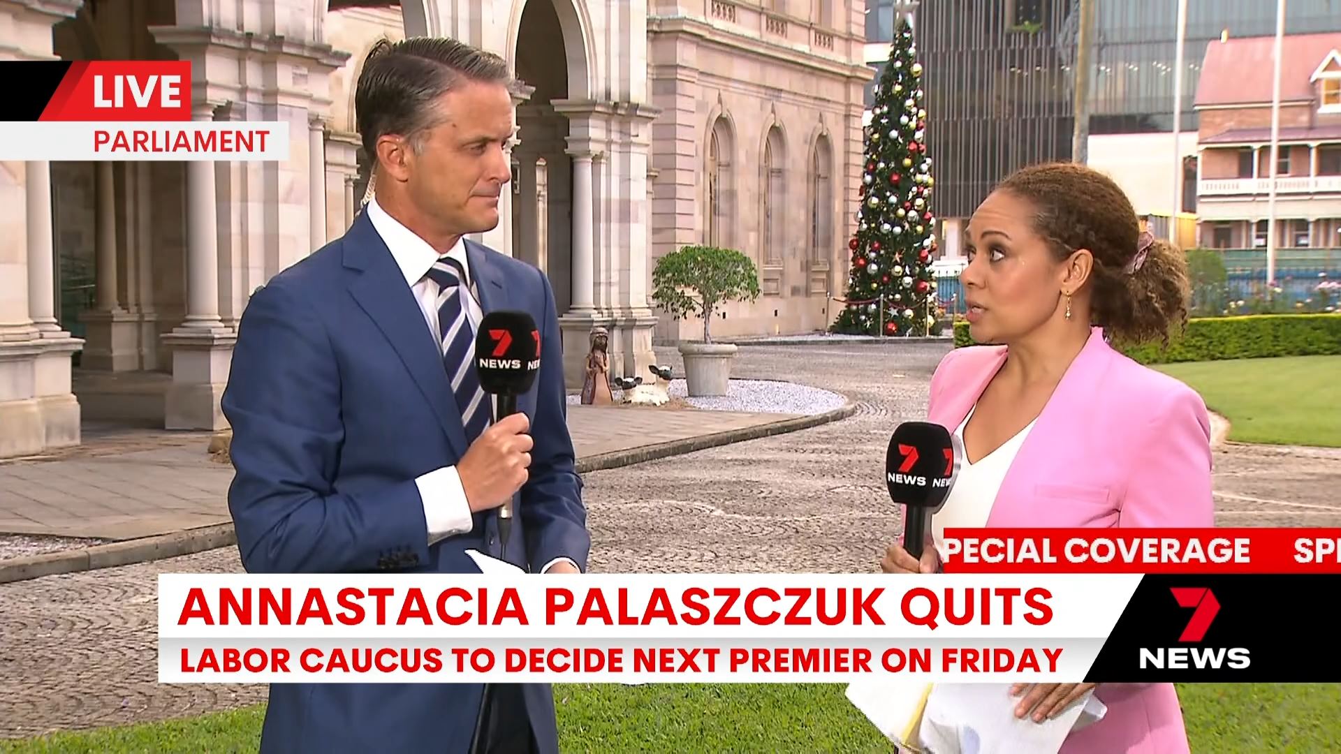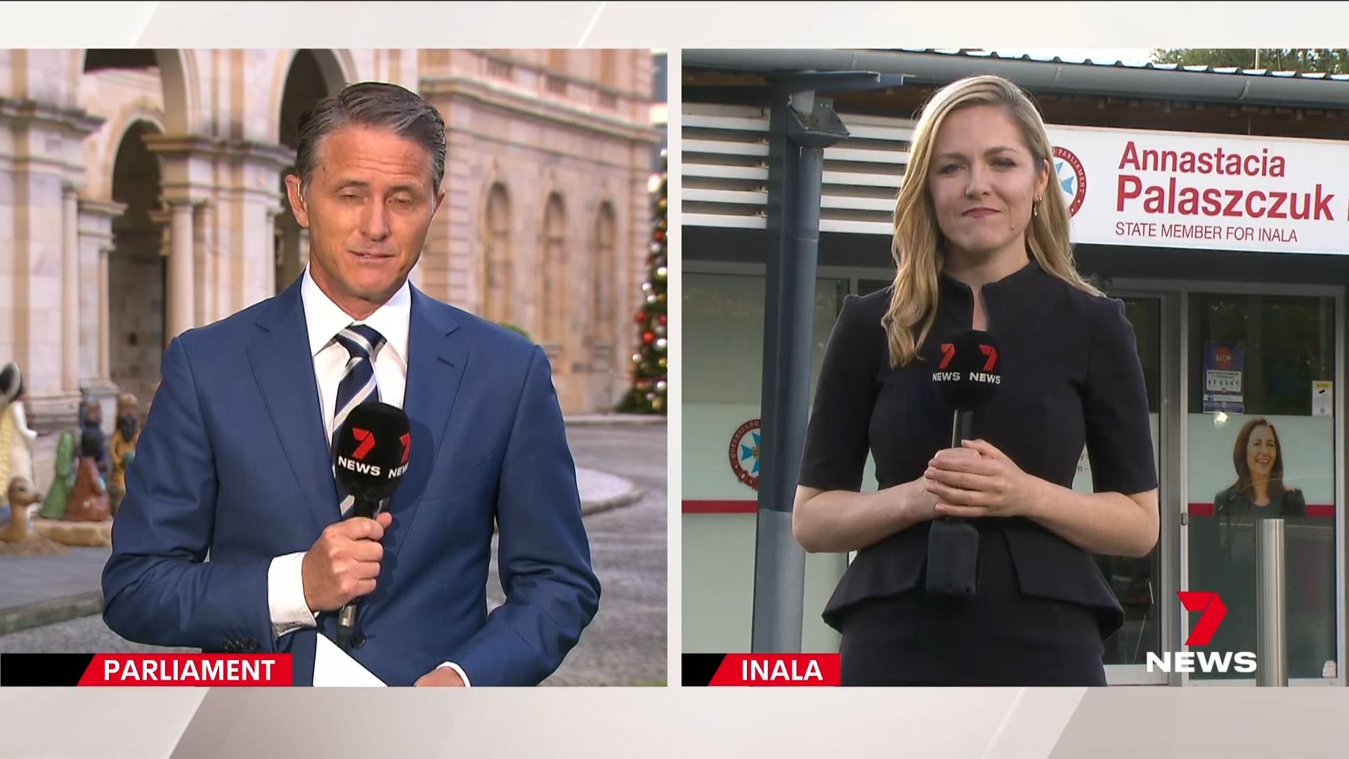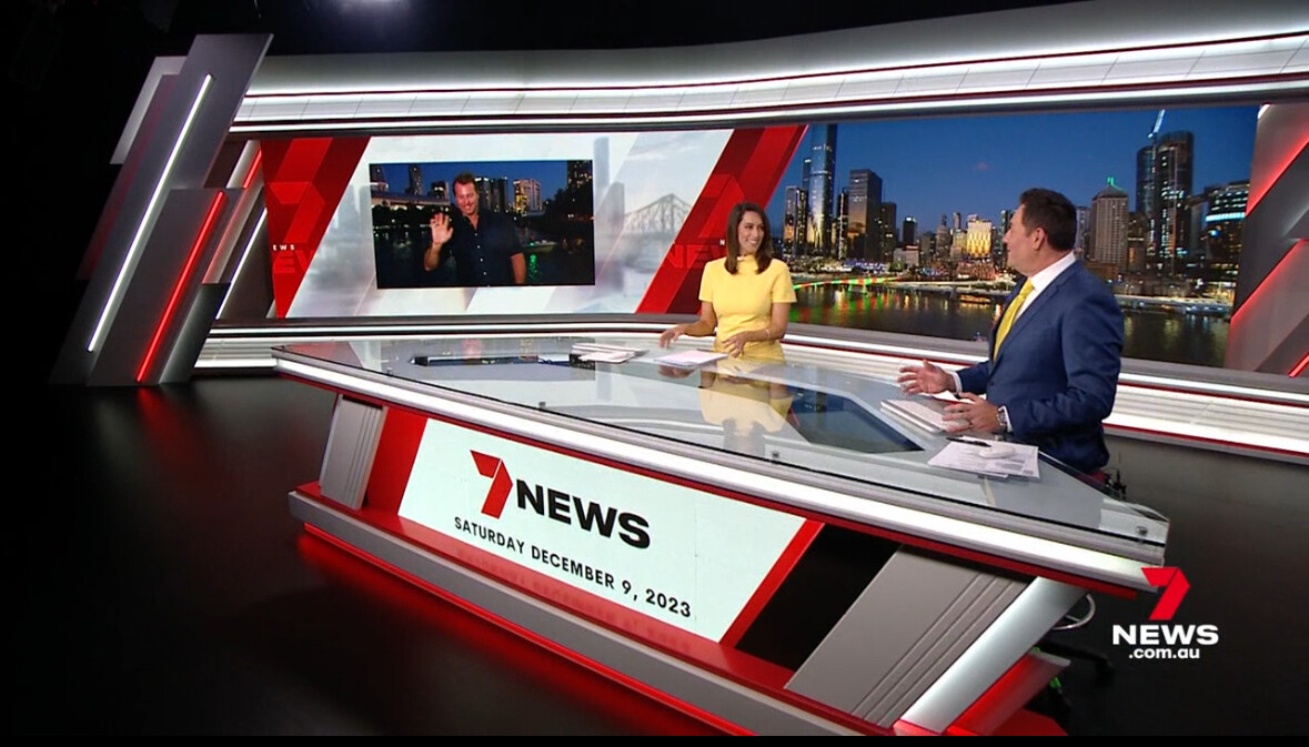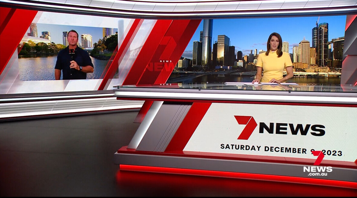 Brisbane tonight. “This is Seven News” with headlines read by Katrina from the studio but with Max opening the bulletin from Parliament House. Poor the resolution is for the standing presentation later.