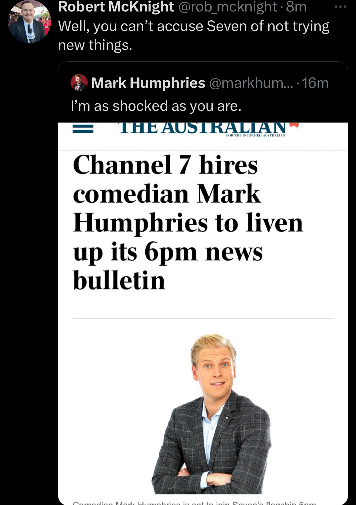 but they are- dare I say it- actual reporters, who just focus on light things. They’re not comedian turn satirists. Dunno if east-coast focused comedy would fly in Adelaide or Perth.