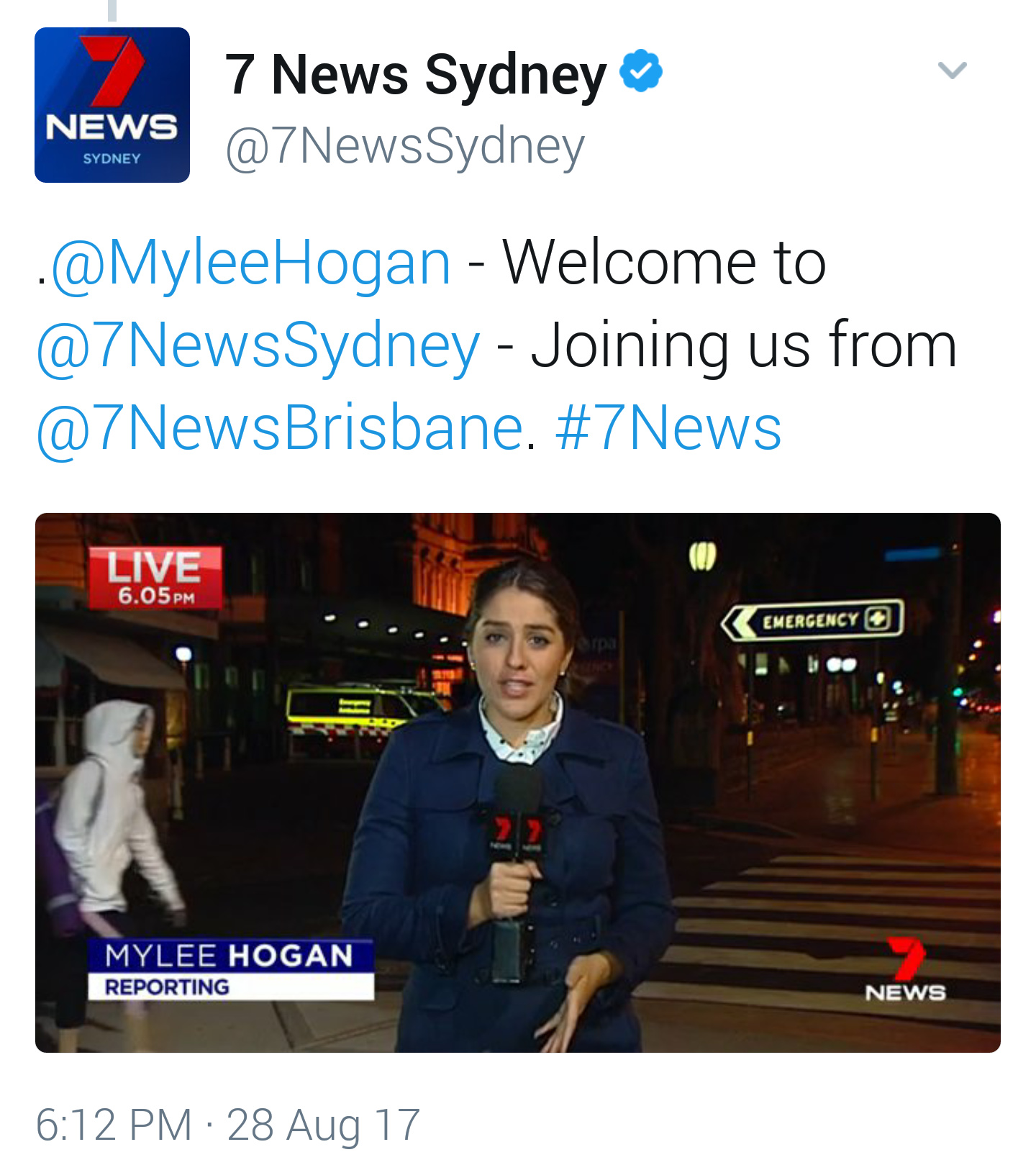 How come Mylee Hogan is doing a report for 7 News Sydney tonight. Isnāt she from Brisbane?