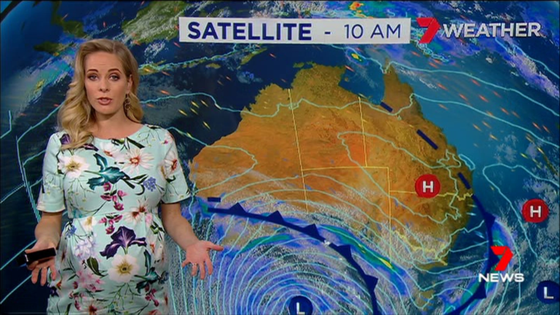 Laura Dymock presented her last weather report tonight in Brisbane until she returns from maternity leave.