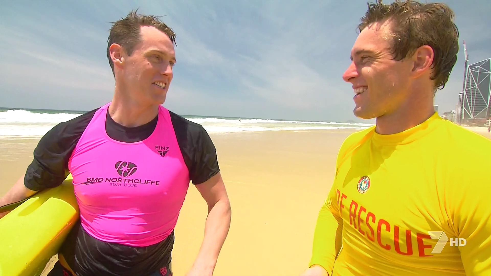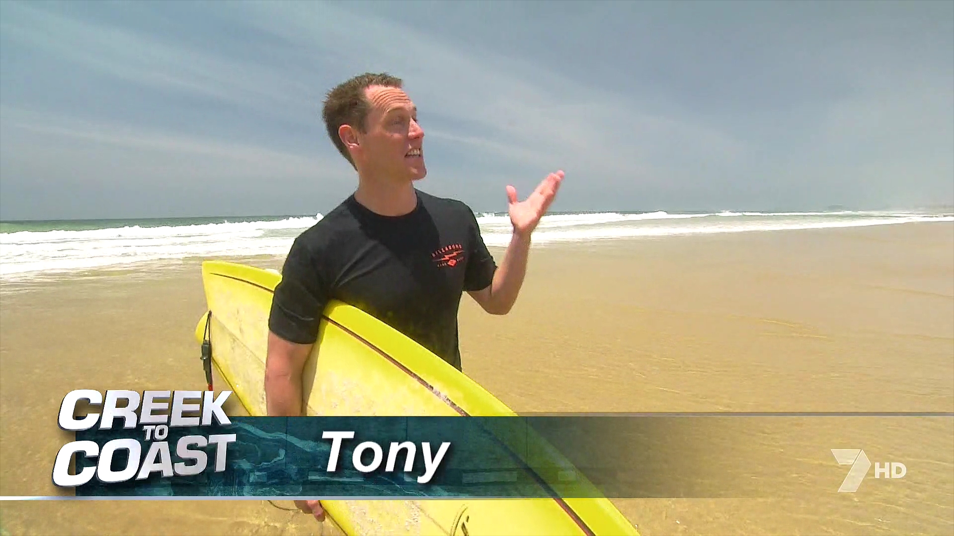 Seven using 7QLD regional news reporter Ben Downie with local news mic flag for news from Townsville.