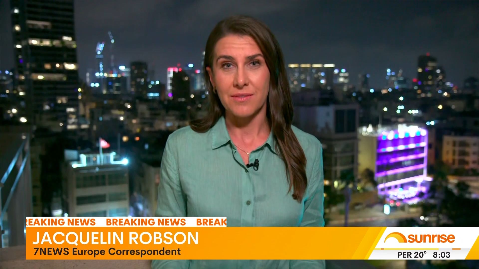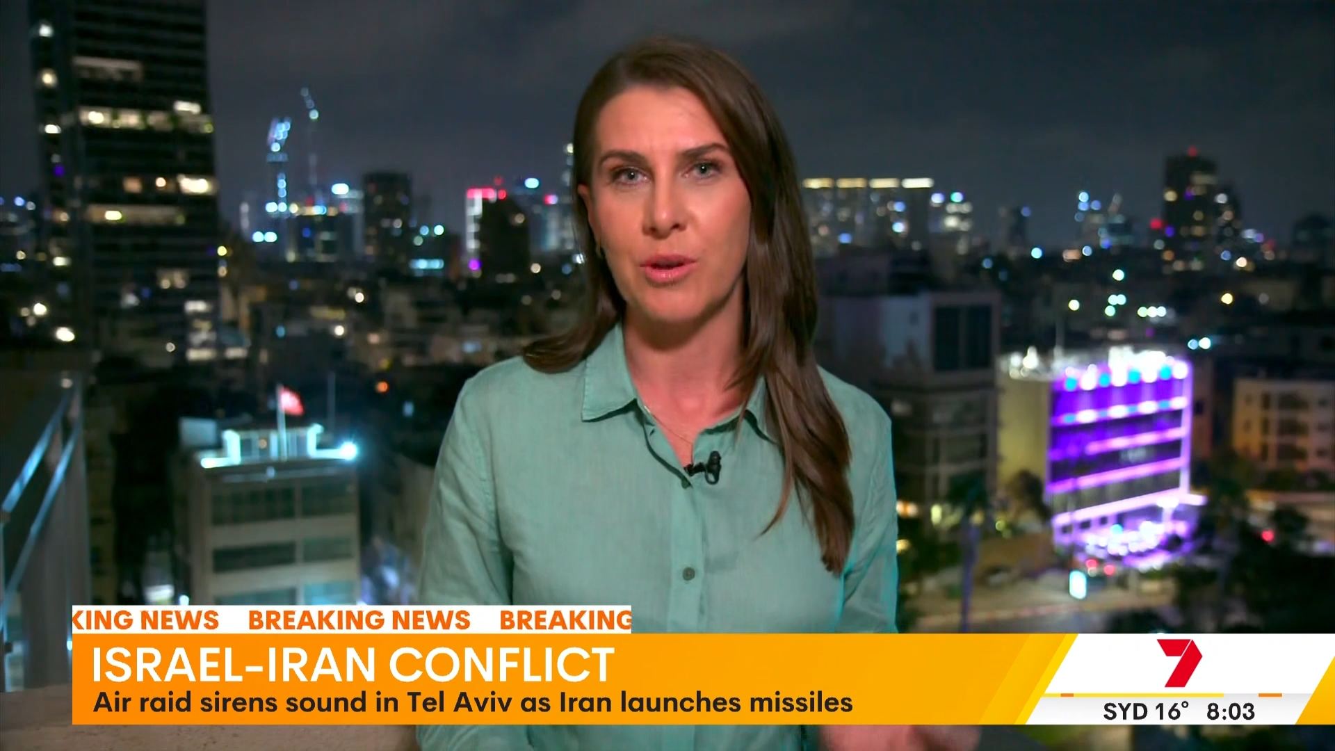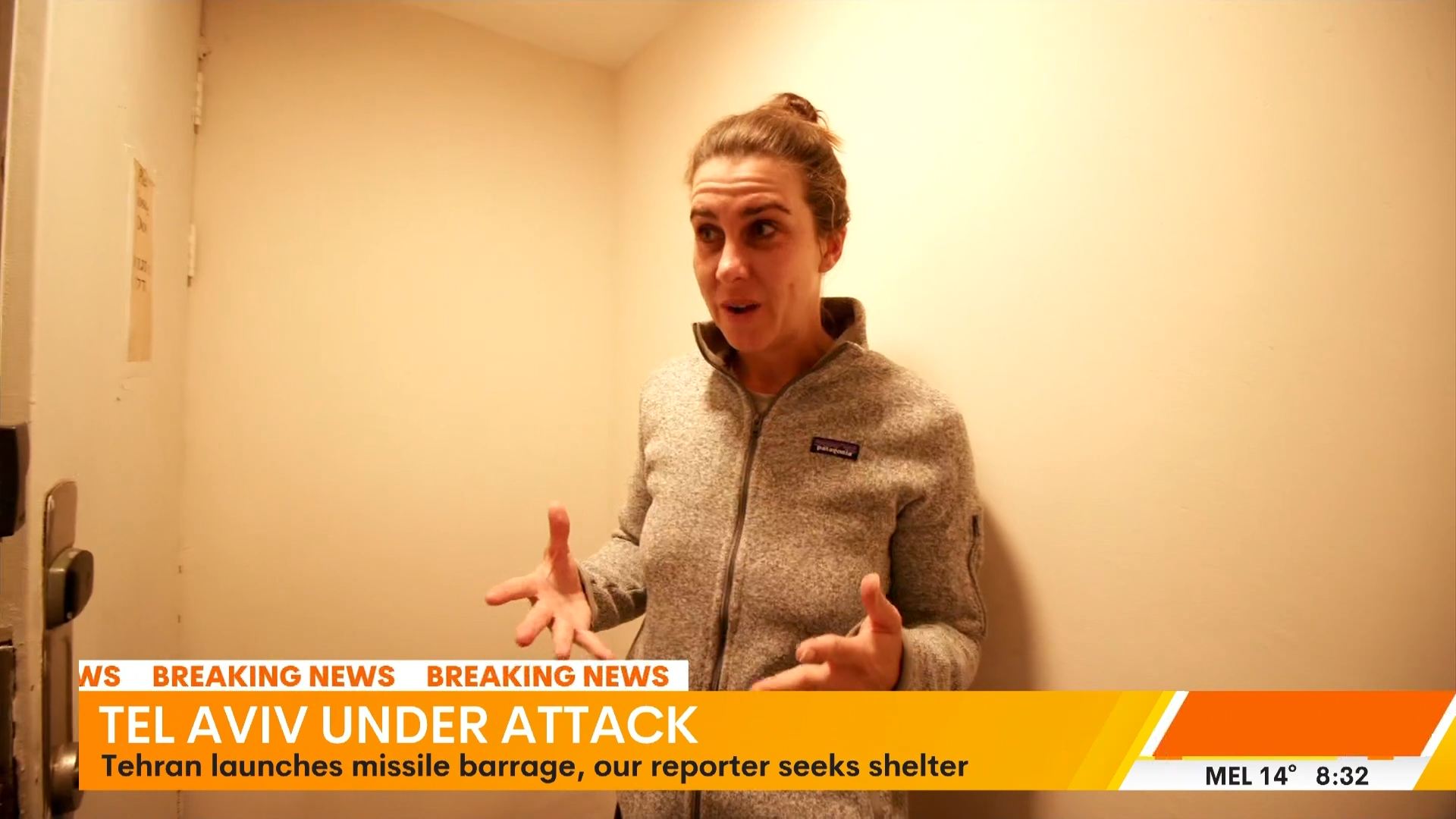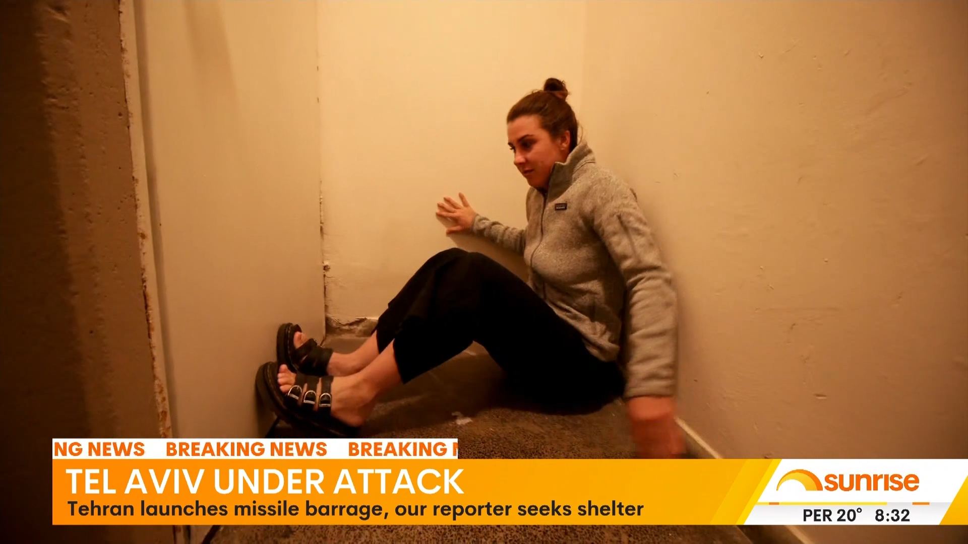 7NEWS reporter Jacquelin Robson was forced to seek shelter after Iranian missiles were detected flying towards Tel Aviv. #missileattack #bunker #israeliran #middleeastconflict #israel #telaviv #7NEWS #sunriseon7