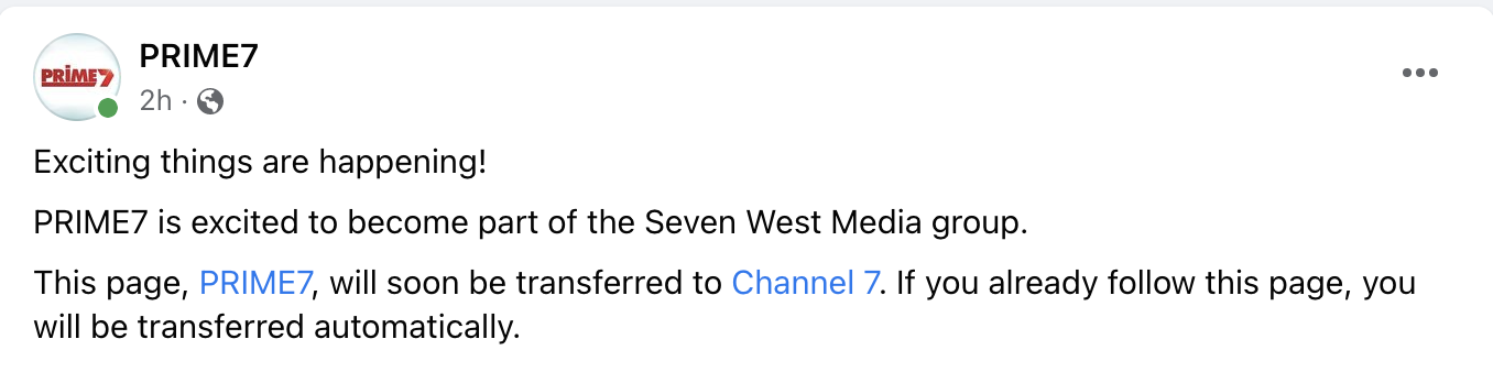 I’m pretty sure Prime7’s Facebook will actually be unpublished soon, which prompted fans to follow Channel 7’s page if they haven’t yet.