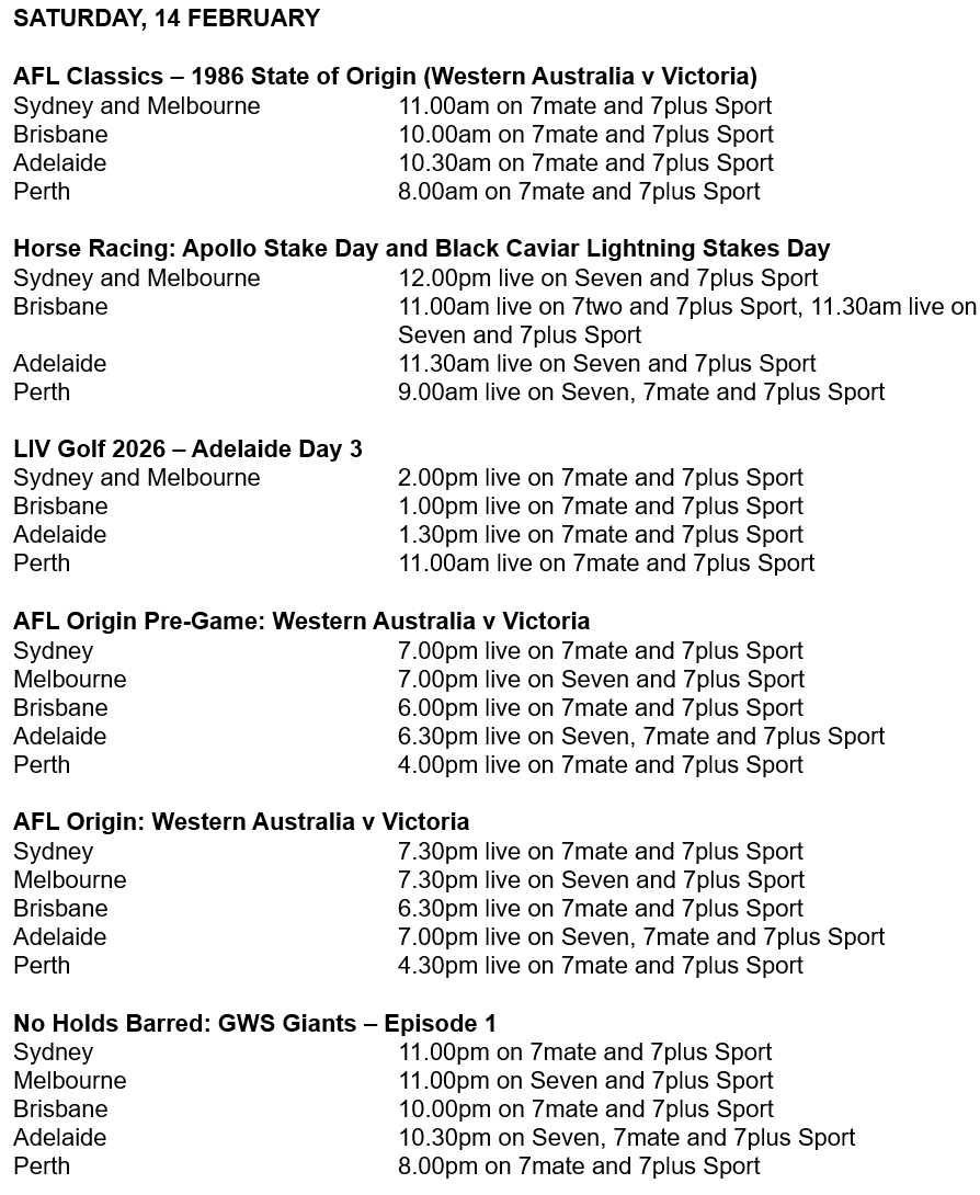 The sport action doesn’t stop there. Seven’s weekly horse racing coverage continues with five hours of live thoroughbred racing from Apollo Stakes Day at Royal Randwick and Black Caviar Lightning Stakes Day at Flemington, on Saturday, 14 February, from 12.00pm AEDT on Seven, 7mate and 7plus Sport.