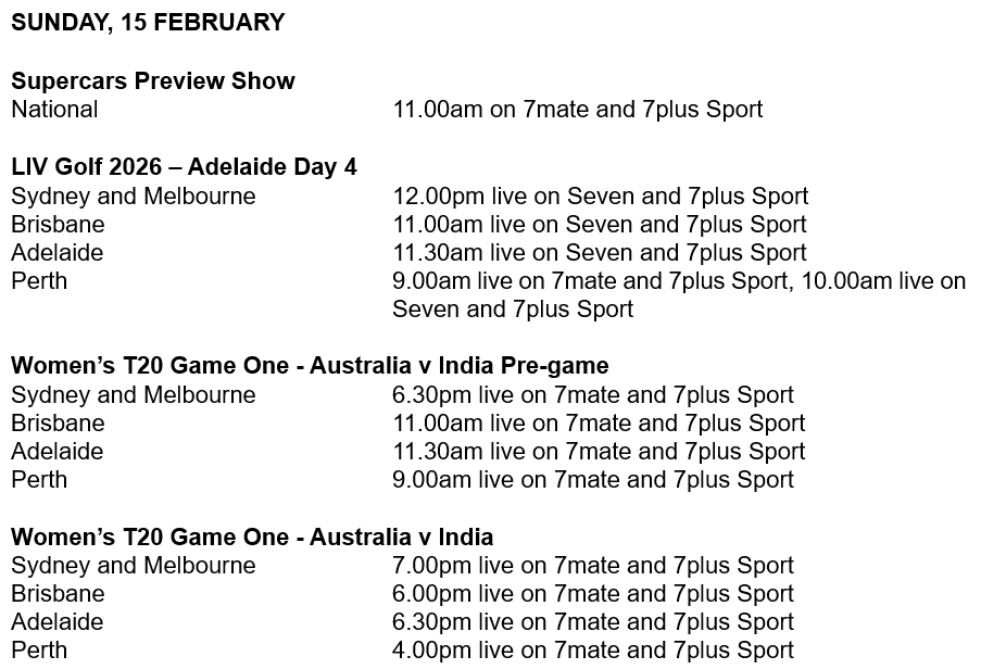 On Sunday, 15 February, at 11.00am on 7mate and 7plus, the Sydney Championship action revs up with the Supercars Preview Show ahead of the Round 1 in Sydney on 21-22 February. Hosted by 7NEWS Sydney’s Matt White with Mark Winterbottom and David Reynolds, the show revisits the thrilling 2025 Championship and previews the first event of the 2026 season.