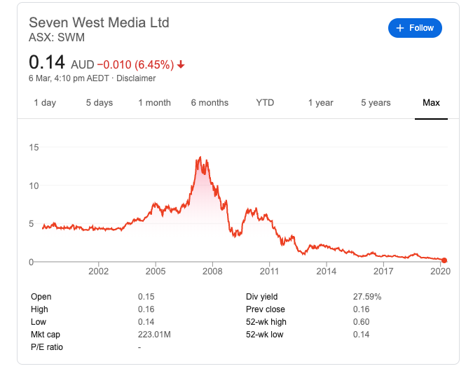 More likely media industry buyers would have to be existing Australian operators who could reduce a lot of duplication between them and Seven - so existing regional TV operators, radio only groups, and obviously News Corp. I’d suggest perhaps HT&E buying Seven might be more likely to be approved by regulators than a direct News Corp purchase.