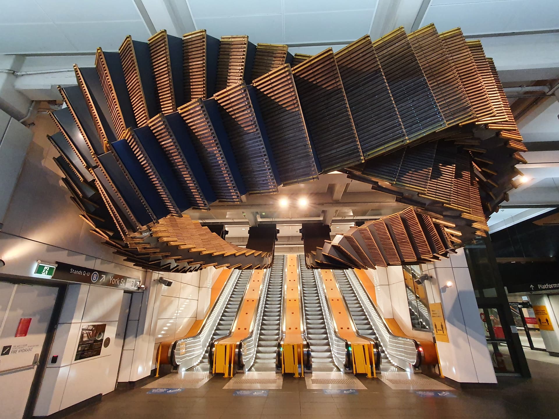 You reminded me of this artwork I photographed a few months back hanging near the escalators at Wynyard railway station in Sydney. ‘Interloop’ was created in 2017 by University of Sydney lecturer, artist and sculptor Chris Fox. The sculpture repurposes the wooden treads of the historic wooden escalators that served commuters here for more than eight decades but were removed earlier that year.