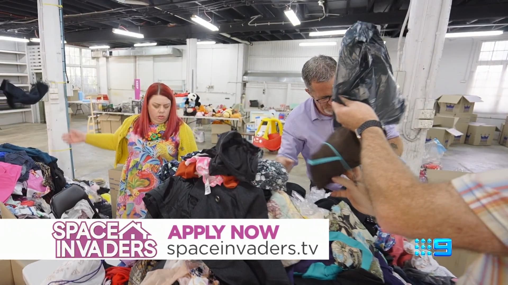 Join Space Invaders , as declutter guru Peter Walsh , renovation queen Cherie Barber and treasure hunter Lucas Callaghan unite to help desperate families declutter not only their homes, but their emotions too. Our Space Invaders are on a mission to tackle the overwhelming number of items that have been accumulated by these folks and are now holding them back from living a happier life.