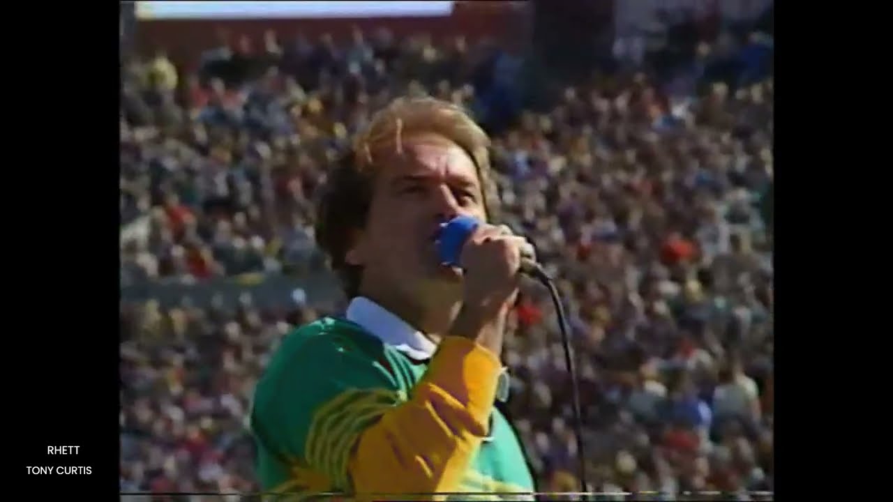 At 1983 Grand Final, singer Glenn Shorrock starts a chant for Americas Cup , before singing Waltzing Maltilda.