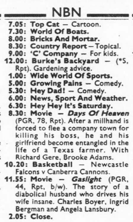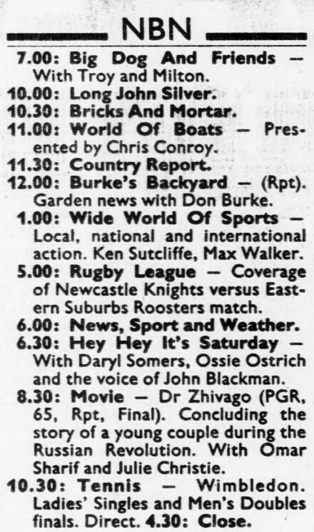 And in 1988, NBN-3 showed highlights of the Knights games the following Saturday (guide example below for Sat 8 July, the game against the Roosters was played on Sun 2 July).