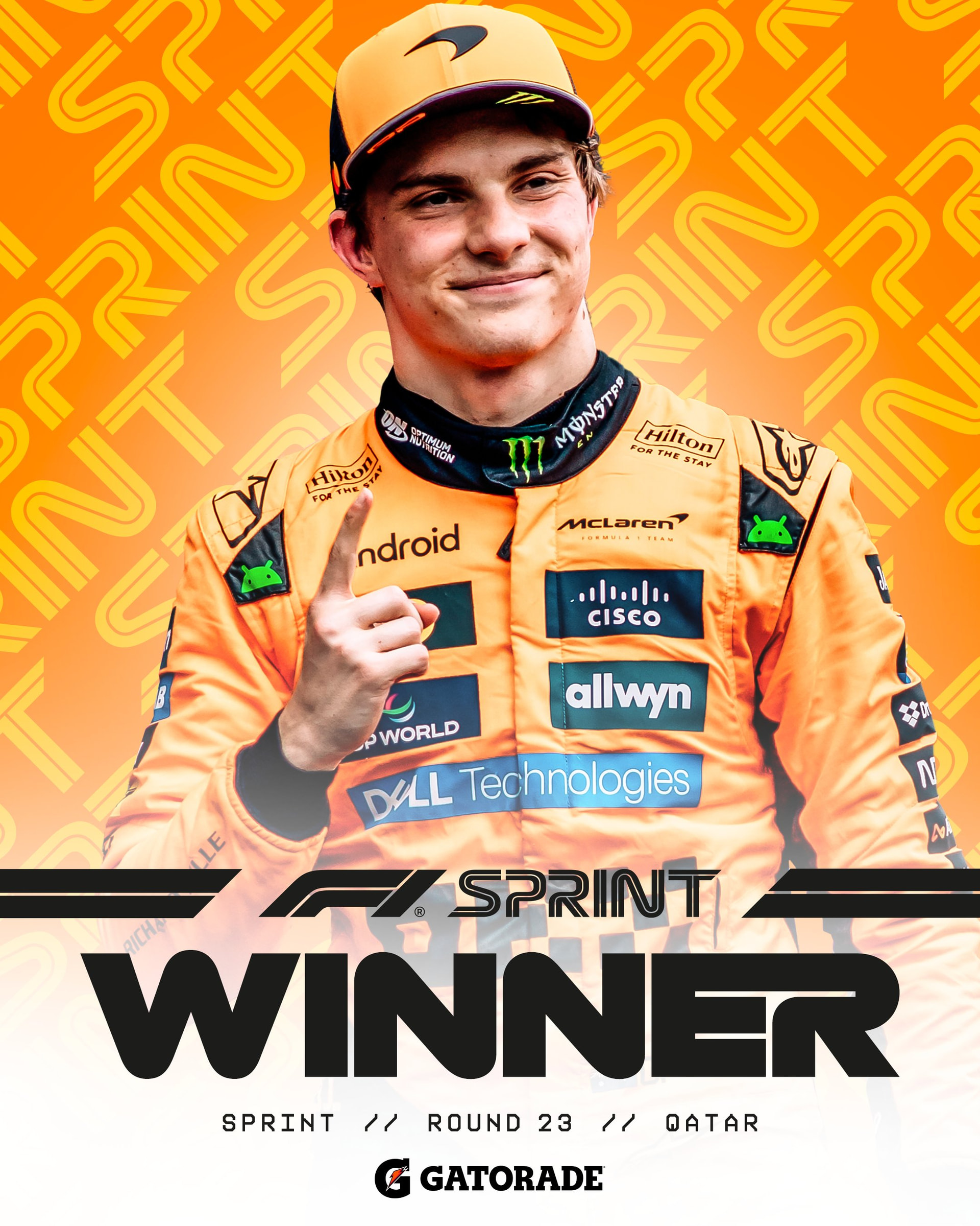From lights out to the chequered flag. Oscar Piastri has won the Qatar Sprint. Norris P3 and Verstappen P4.