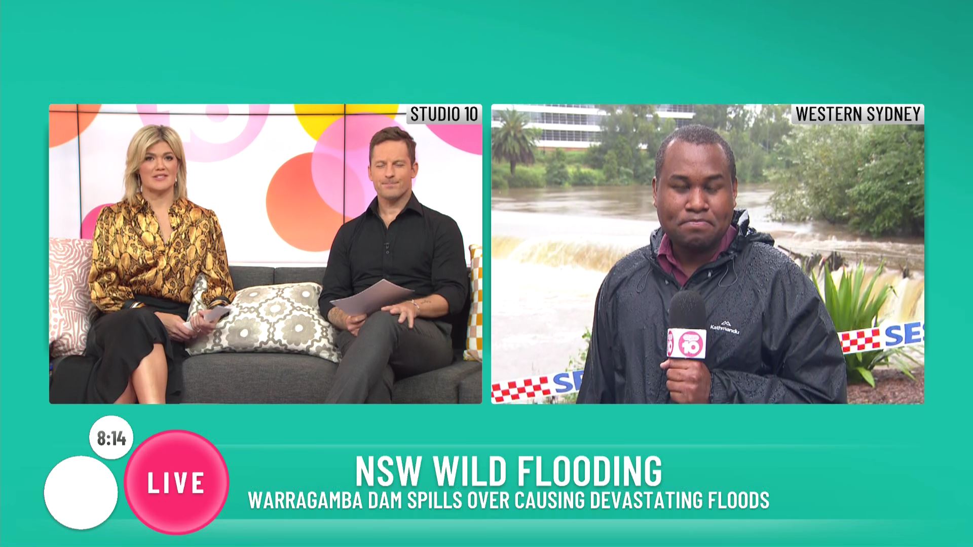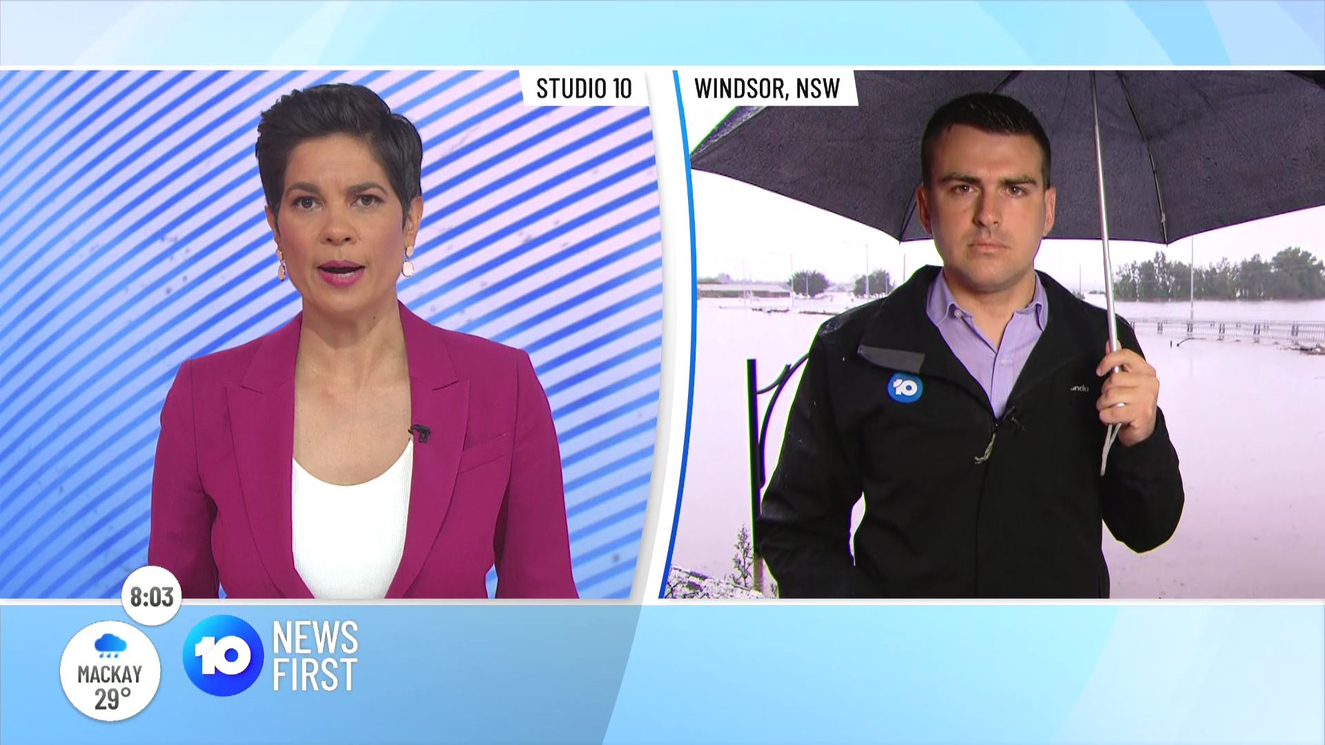 Using 10 News branding for the coverage that was introduced by Narelda and Studio 10 branding when introduced by Sarah and Tristan.