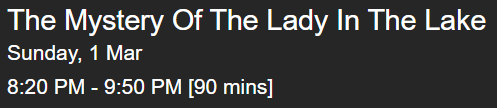 | 8 | THE MYSTERY OF THE LADY IN THE LAKE | Seven | 389,000 | 111,000 | 22,000 |