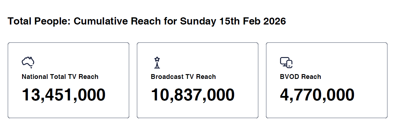 Data © OzTAM Pty Limited 2026. The Data may not be reproduced, published or communicated (electronically or in hard copy) in whole or in part, without the prior written consent of OzTAM.