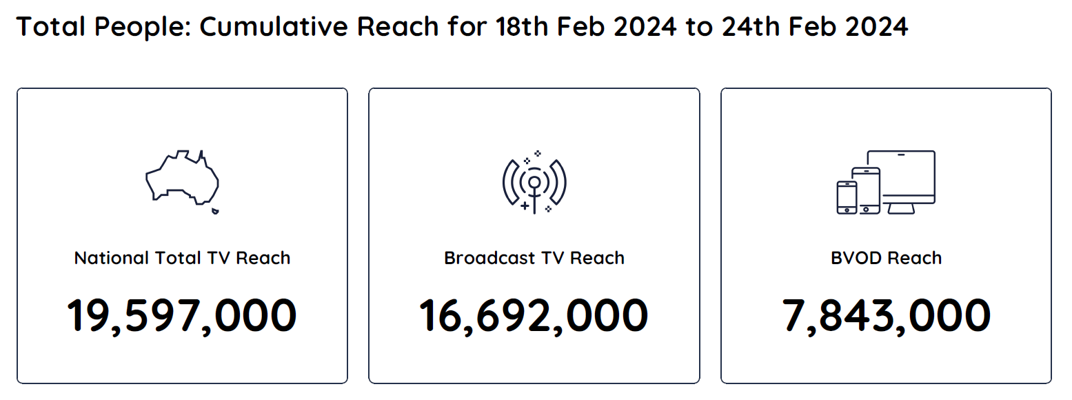 Data Β© OzTAM Pty Limited 2024. The Data may not be reproduced, published or communicated (electronically or in hard copy) in whole or in part, without the prior written consent of OzTAM.
