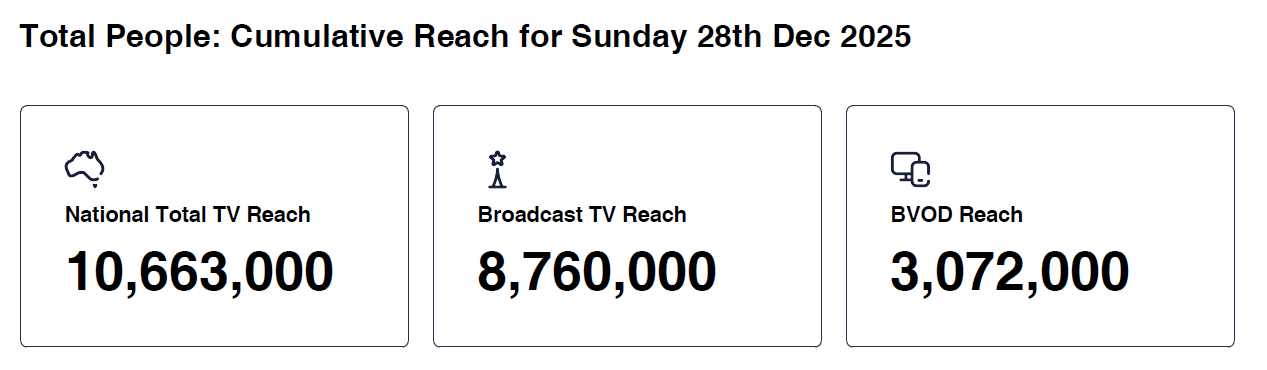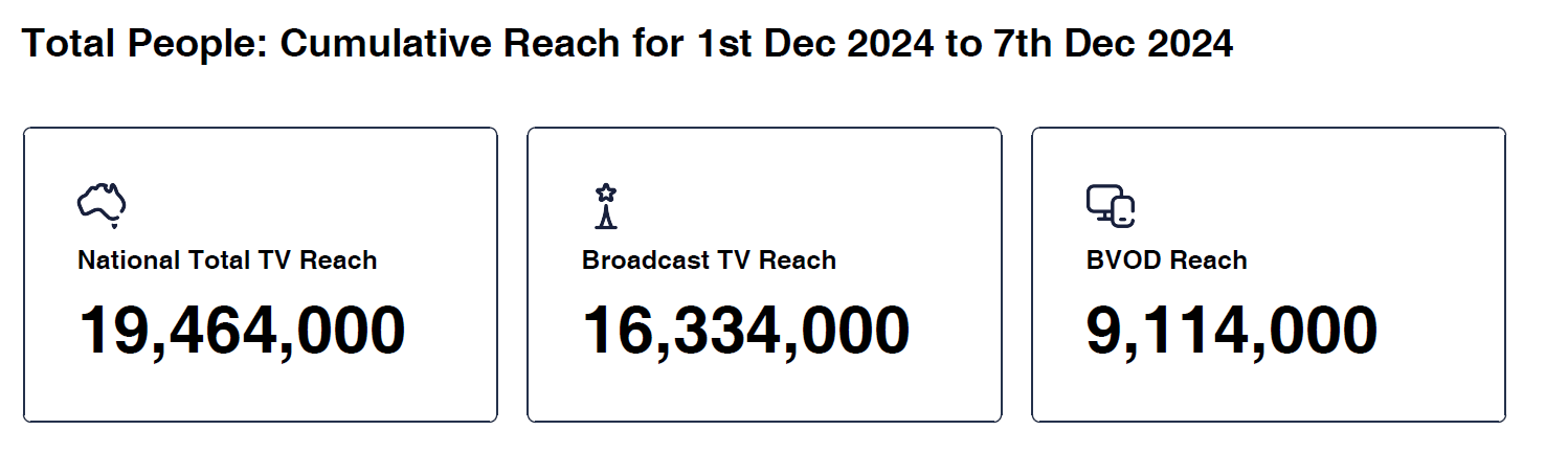 Data © OzTAM Pty Limited 2024. The Data may not be reproduced, published or communicated (electronically or in hard copy) in whole or in part, without the prior written consent of OzTAM.