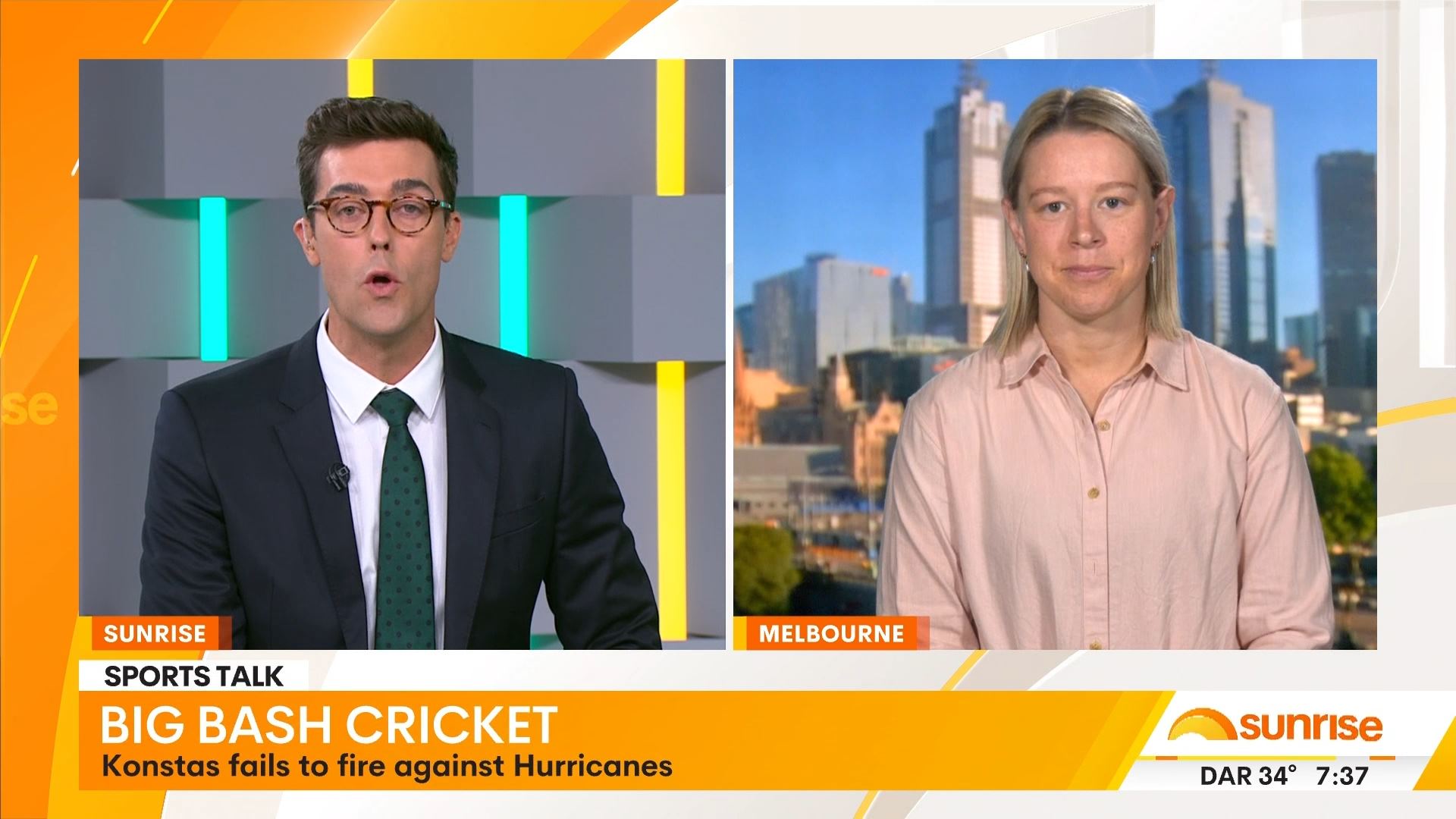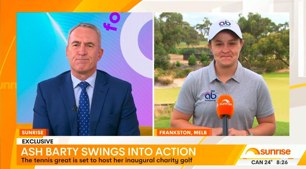 Back from break at 8.25 to Beretts on the couch alone for an interview with Ash Barty. Just a bit different.