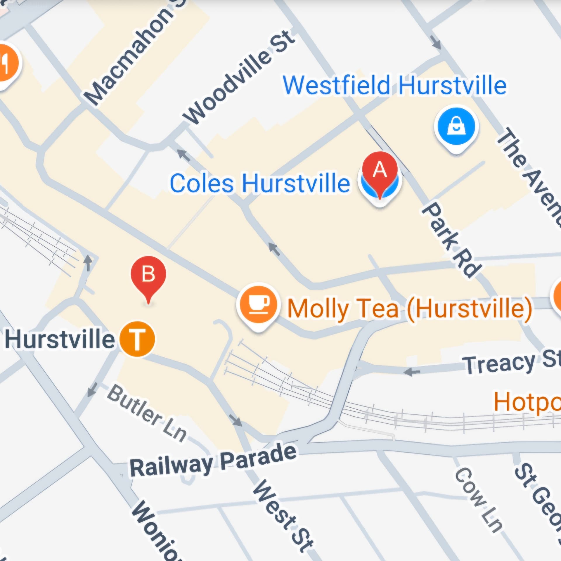 Hurstville has two Coles supermarkets. One in Westfield and one in Hurstville Central above the railway station. They also have two Woolworths. One in Westfield and one under a new apartment block.