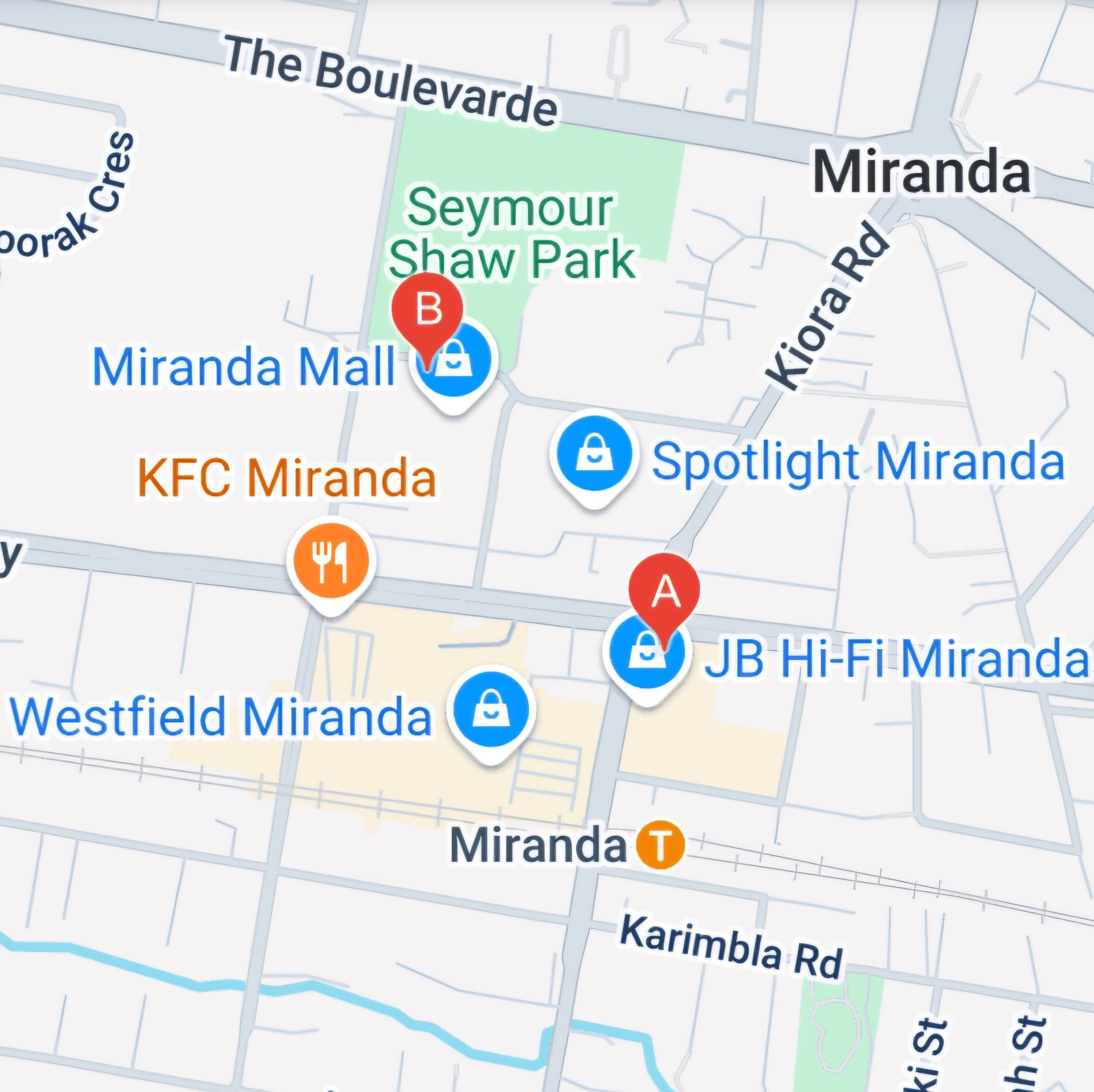 Miranda has two Coles supermarkets. One in Westfield and one in Miranda Mall, in a nearby street.