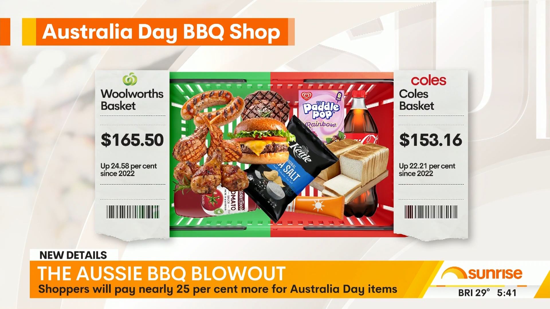 Two price comparisons on breakfast TV this morning. Sunrise comparing items that might be used at a BBQ (Australia Day) with a strap suggesting prices are up 25% - but the comparison is to 2022 for some reason.