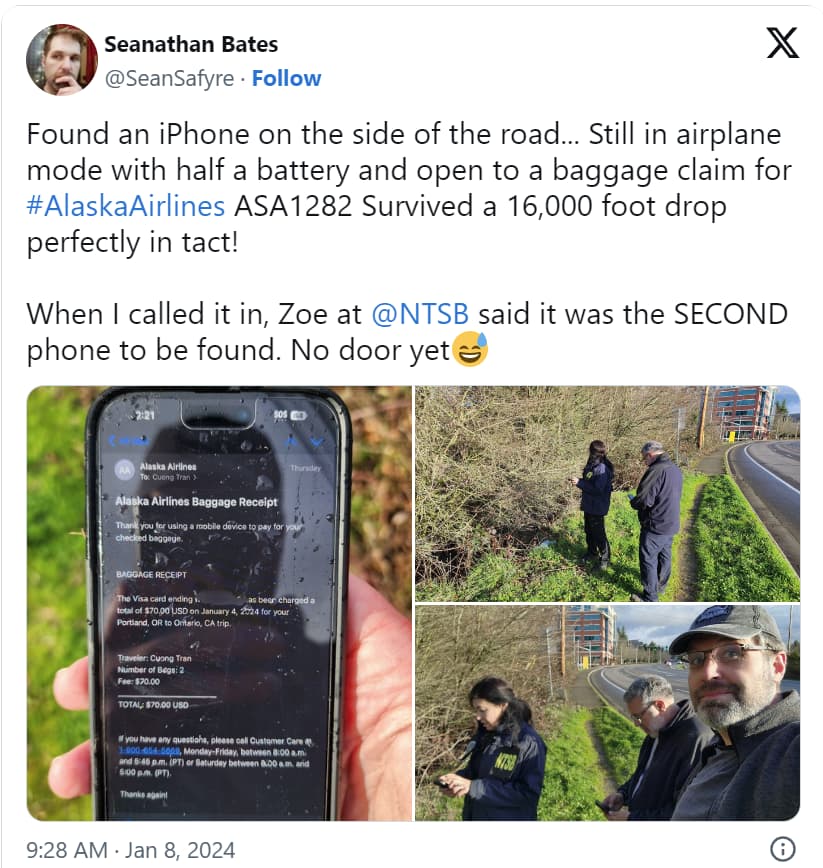 When I called it in, Zoe at @NTSB said it was the SECOND phone to be found. No door yetš pic.twitter.com/CObMikpuFd
