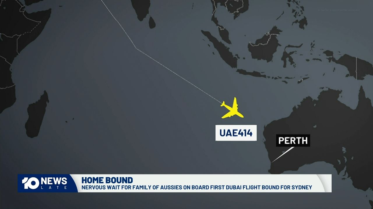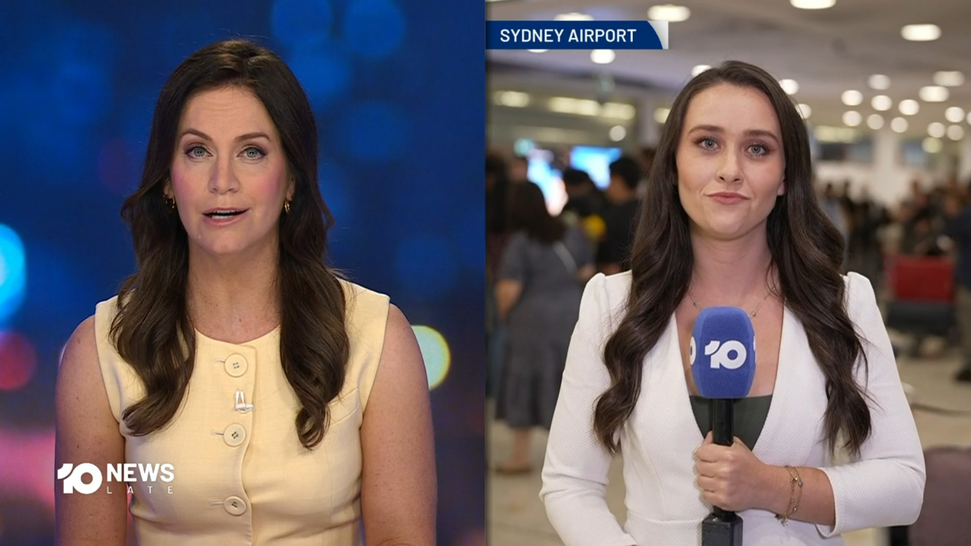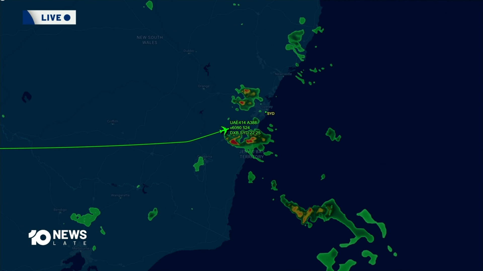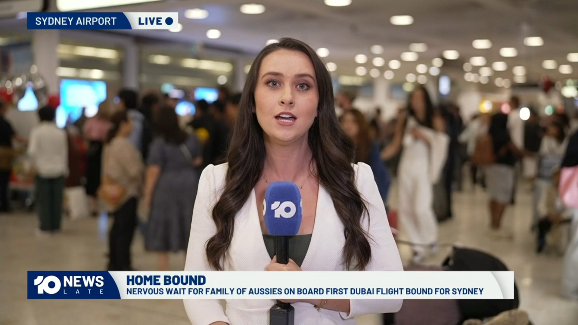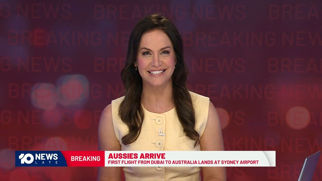 Live cross to Sydney airport at 10:10pm where Emirates flight EA414 is said to be “landing in 20 minutes” which suggests the bulletin is live as that matches the 10:30pm ETA..