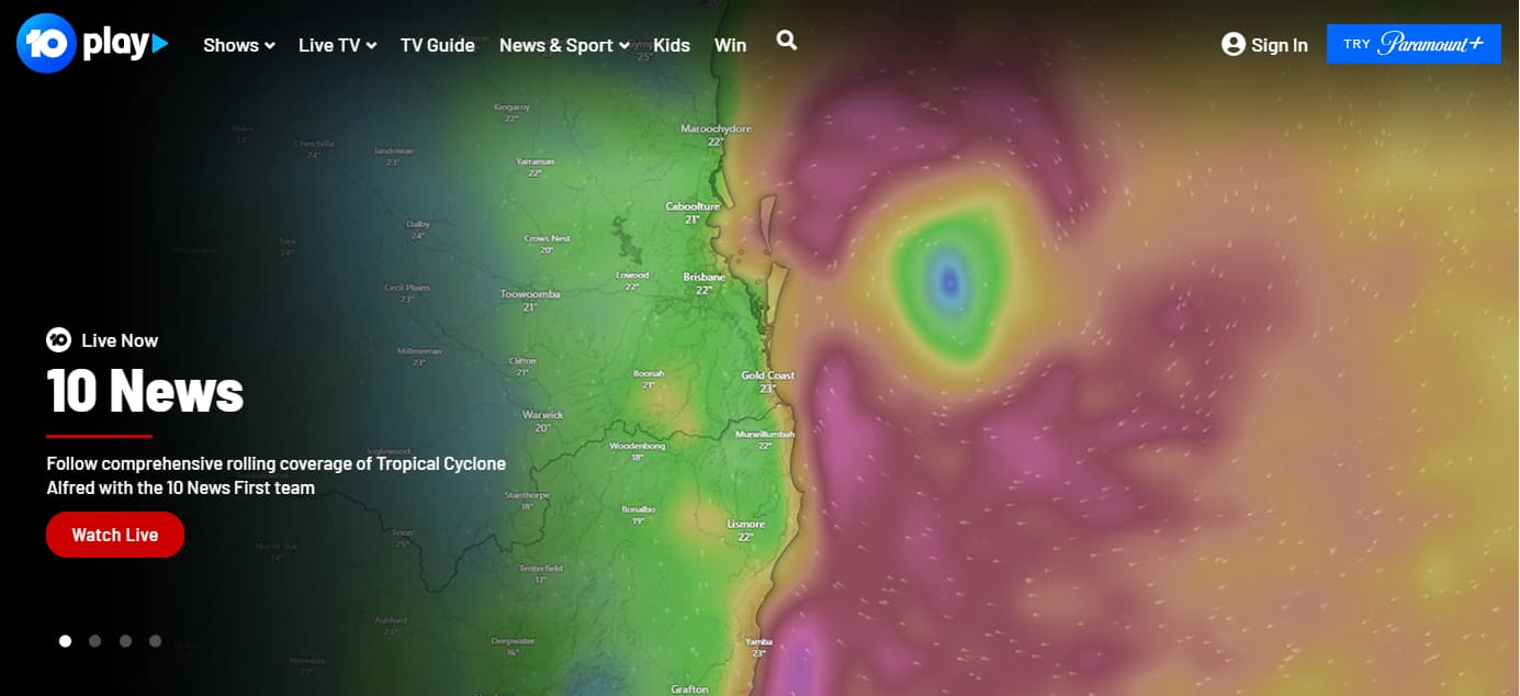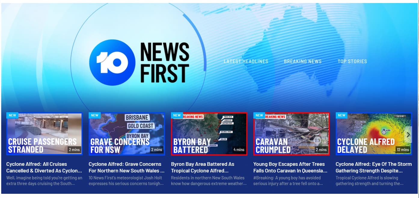 10 has returned a news carousel to the 10 play homepage, likely due to additional coverage of the cyclone currently.