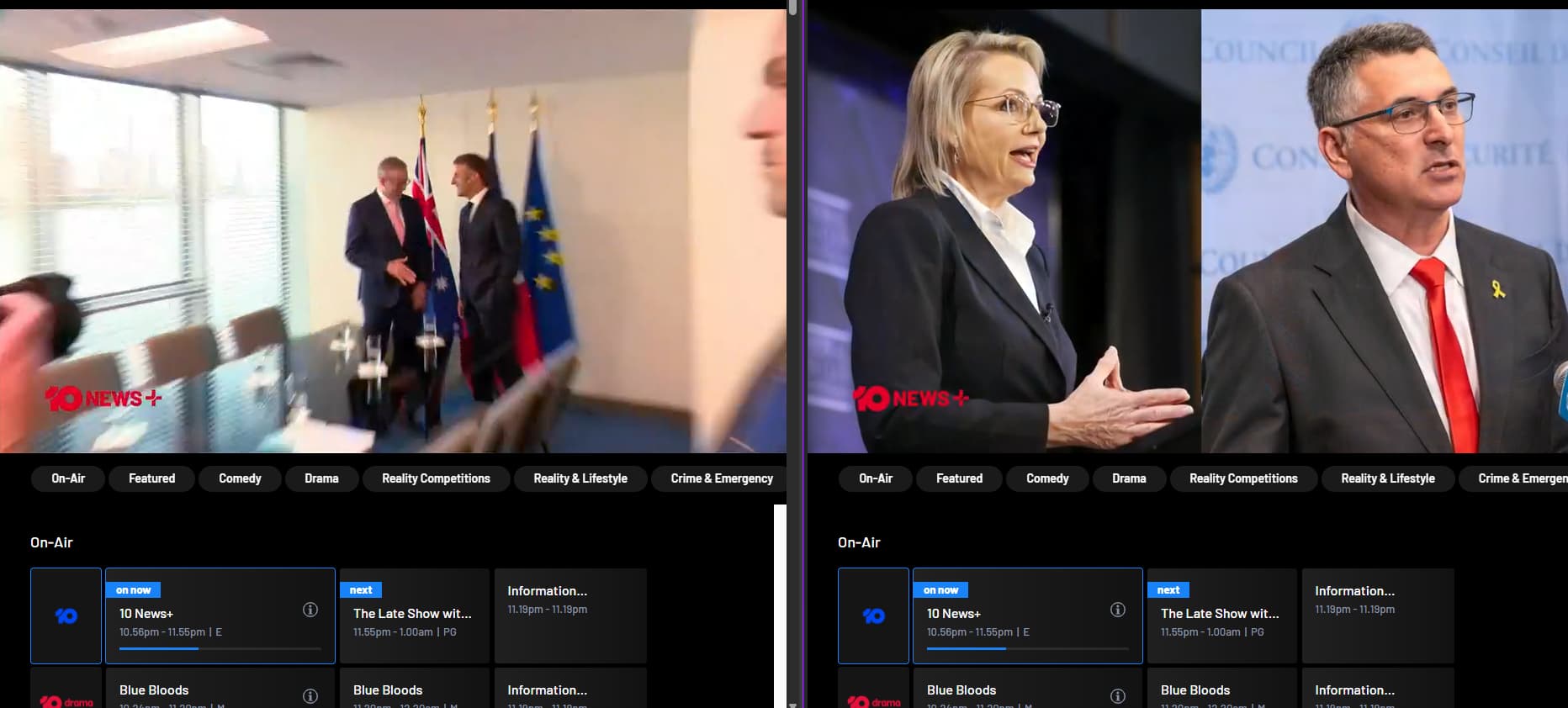No that’s your internet. Various factors like internet speed, location of your node etc. all impact what you see on live streams. It’s not like FTA. Buffering, timings, network congestion all contribute which is why you’re seeing a delay across the two windows. That’s not 10. No one will be synced across two streams.