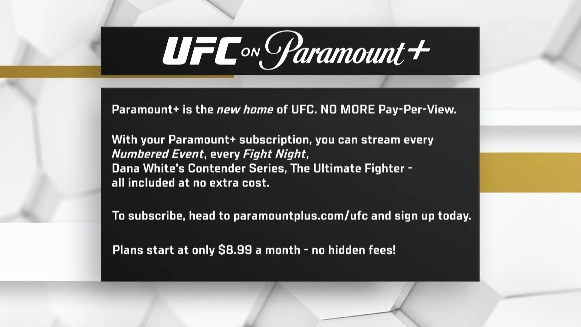 Did anyone capture that end 10 slide just now? Something about order UFC on Kayo Sports