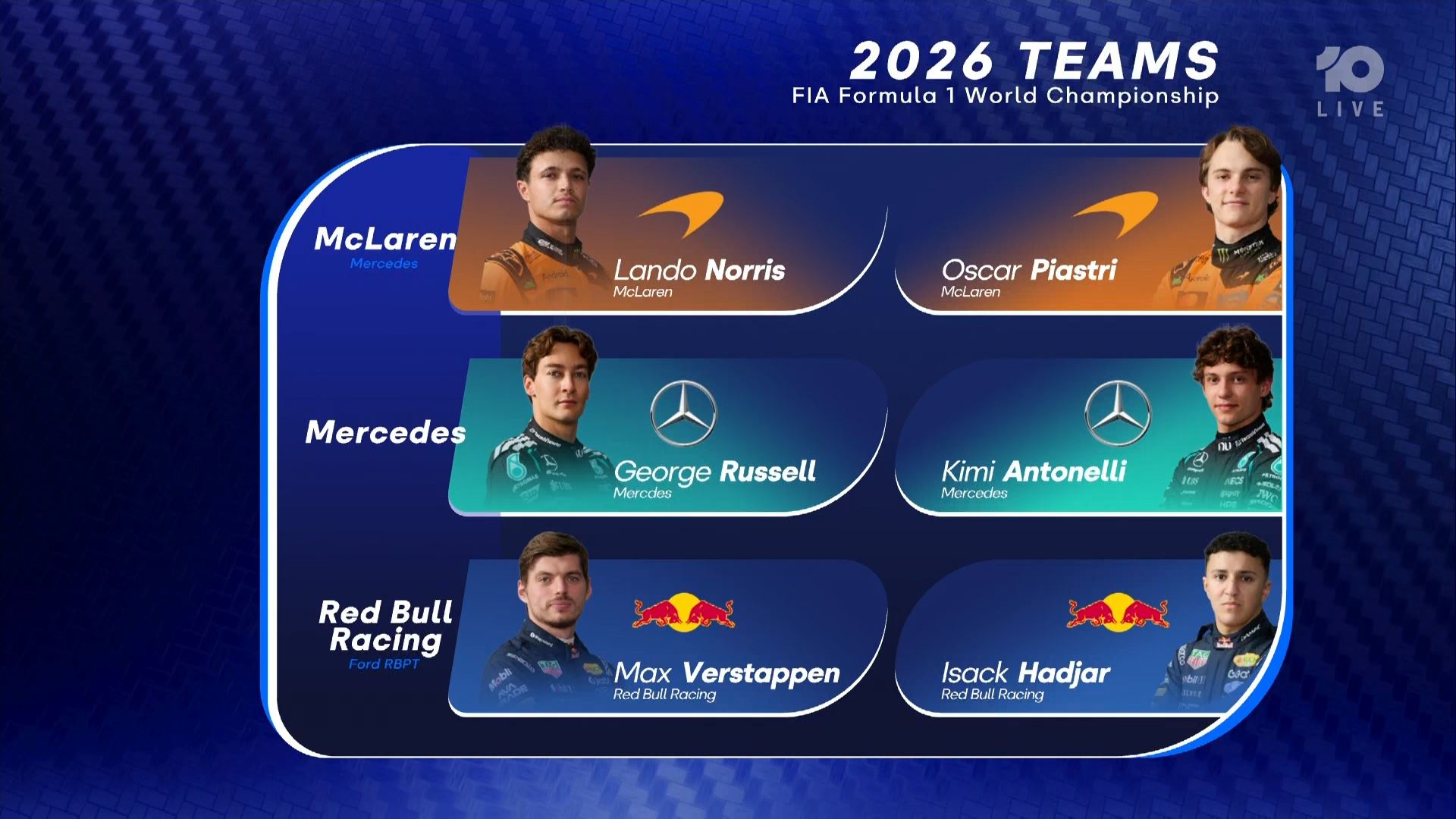 10’s comprehensive coverage will be led by host Scott Mackinnon, alongside Formula 1 world champion Damon Hill, commentators Tom Clarkson and Richard Craill, and guest expert Guenther Steiner. Trackside, Tim McDonald, presenter Steph Baumgartel, and reporters Sam Power and Archie Thompson will deliver authoritative commentary, expert analysis and behind-the-scenes perspectives across the race weekend.