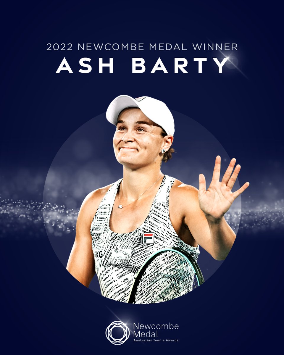 Ash Barty edged out Nick Kyrgios to win the Newcombe Medal. She also presenting the Spirit of Tennis award to her idol Evonne Goolagong Cawley at tonight’s ceremony, in a return gesture from January this year when Goolagong Cawley presented the Daphne Akhurst Memorial Cup to Barty at the Australian Open women’s singles final.