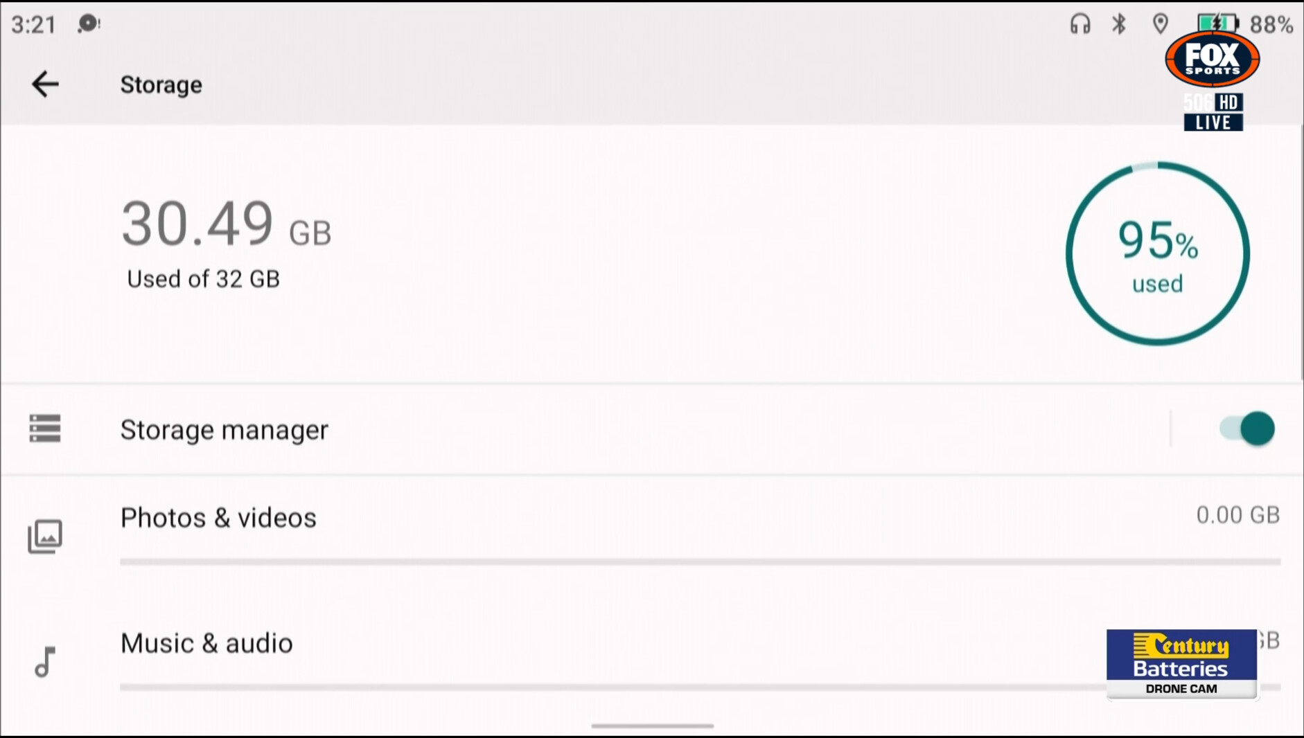 This appeared for a second during the formation lap of today’s Supercars race at Sandown. It looks to me like an Android storage stats for a phone or Tablet (maybe a Samsung?). How that got into the broadcast would be fascinating to know ![]()
