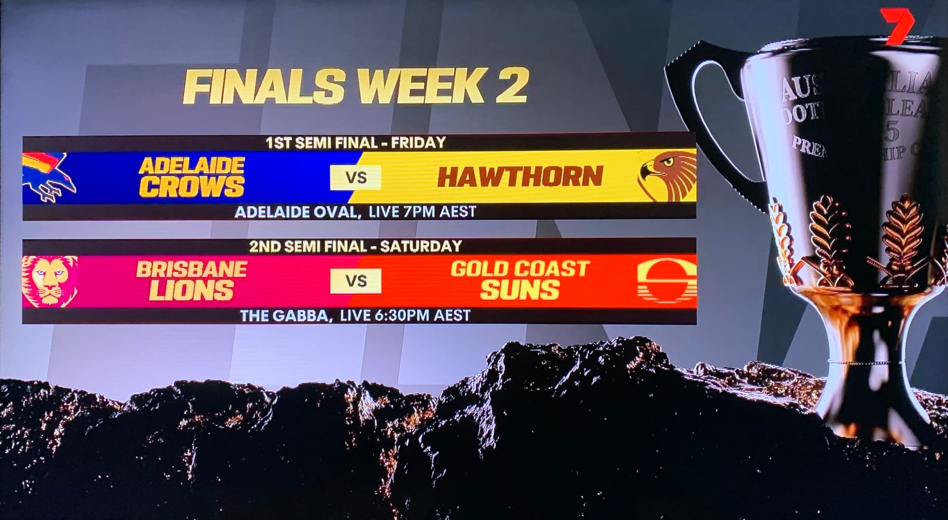 End of Monday’s ep, the final full page graphic with this weekend’s semi finals match-ups remained on screen partially. Didn’t fully fade away for the last 15 seconds, never noticed this happen before.