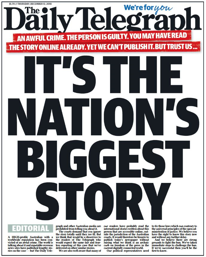 Said to be a “huge Australian story” that is making news around the world but can’t be covered in Australia. Would make headlines for weeks.