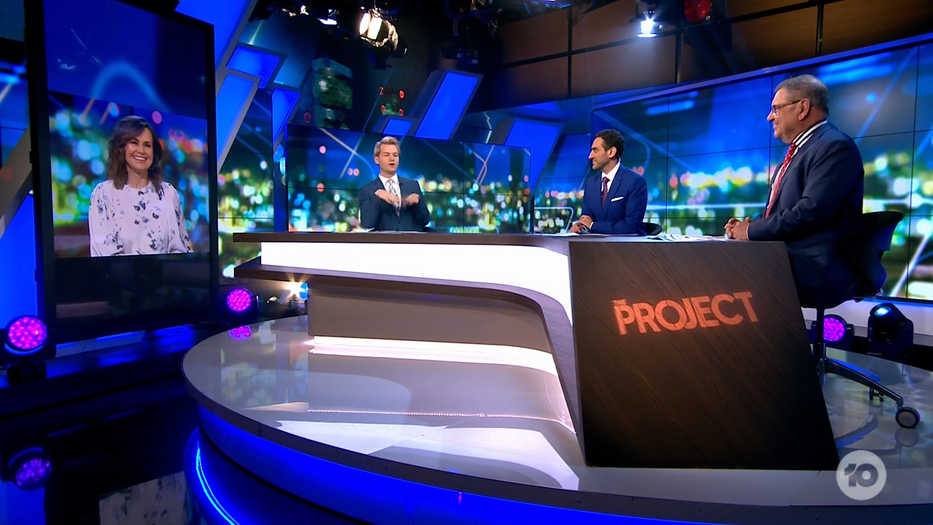 Waleed, Joel Creasey and Steve Price at the desk with Lisa Wilkinson in the Sydney studio ( Iâm assuming) tonight.