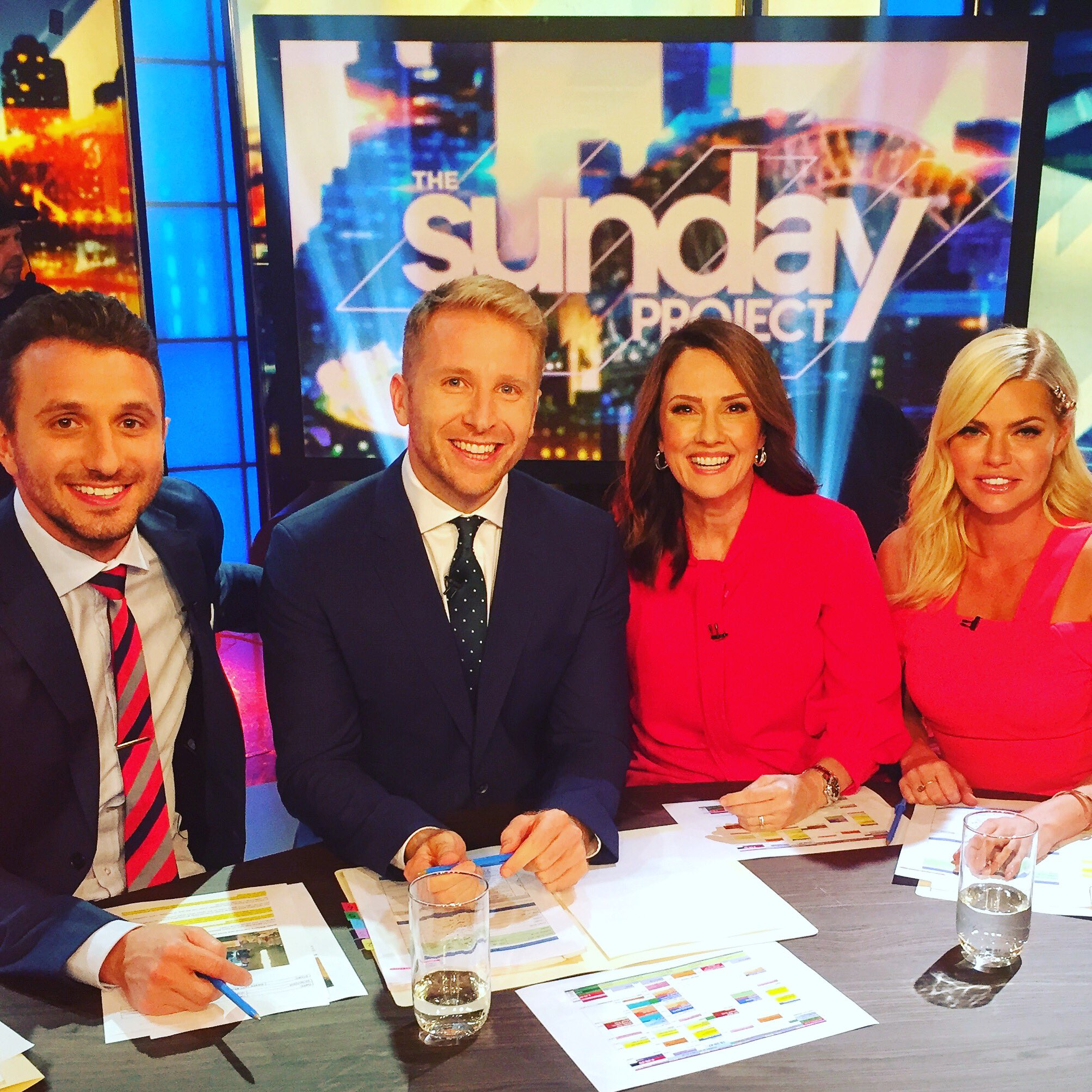 Hamish Macdonald, Chris Bath, Tommy Little and Sophie Monk on The Sunday Project tonight.